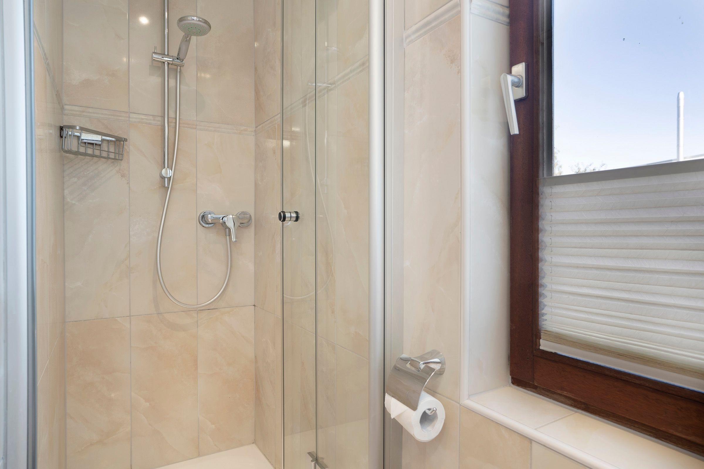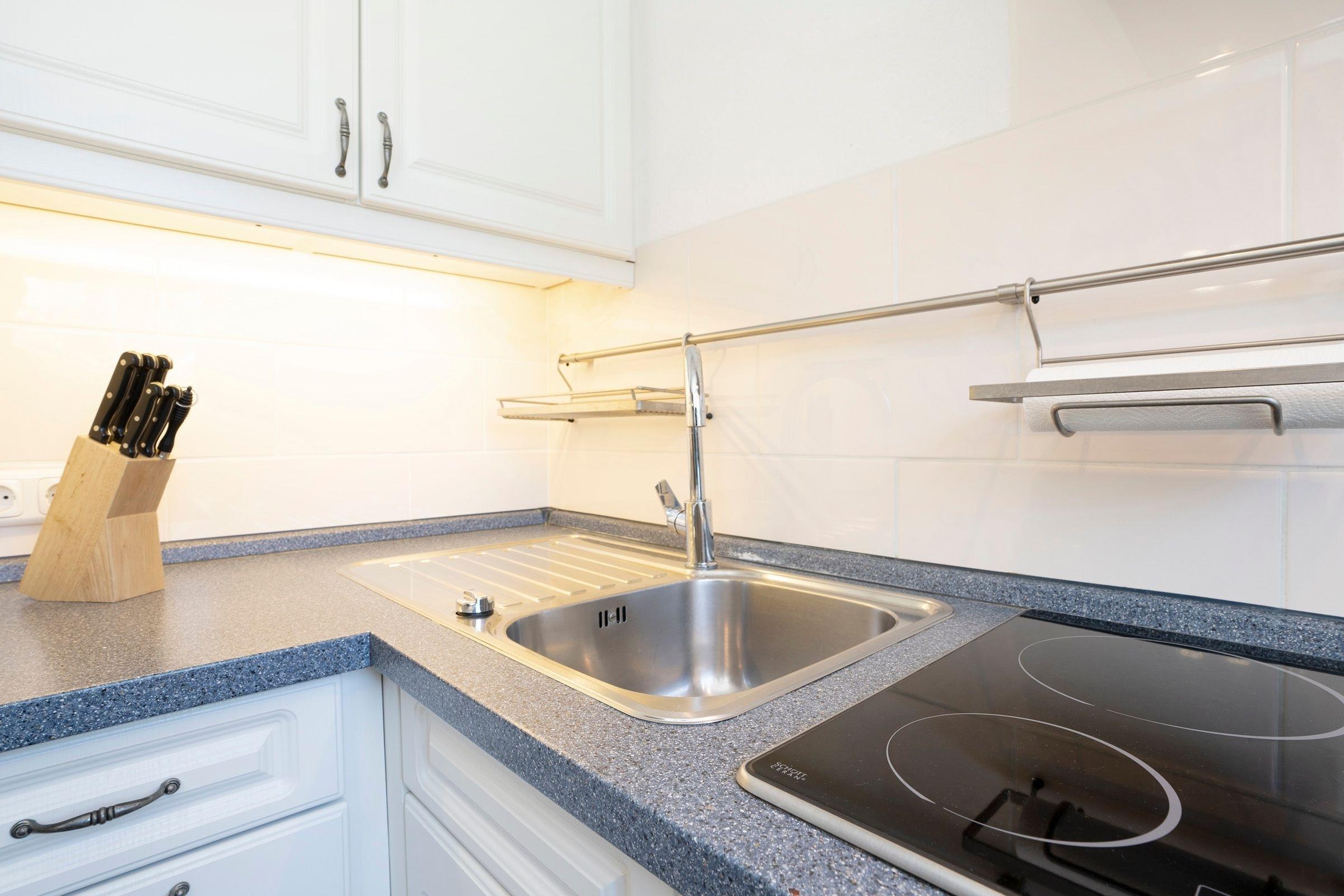 In der Wohnung gibt es ein Wohnzimmer sowie zwei separate Schlafzimmer. Ein Schlafzimmer verfügt über ein Doppelbett (2x 90x200 cm, durchgehender Topper), das zweite Schlafzimmer bietet Ihnen ein Etagenbett (je 90x200 cm). Eine kleine gemütliche Küche und ein Badezimmer erwarten Sie ebenfalls. Vom Wohnzimmer aus gelangen Sie direkt auf die sonnige Terrasse und in den großzügigen Garten, der nicht komplett eingezäunt ist. Wenn das Wetter einmal nicht mitspielt, können Sie sich die Zeit mit dem Smart TV im Wohnzimmer vertreiben.