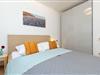 Schlafzimmer: 1 Doppelbett (160x200 cm, durchgehende Matratze), Kleiderschrank, Verdunkelung (Plissees)