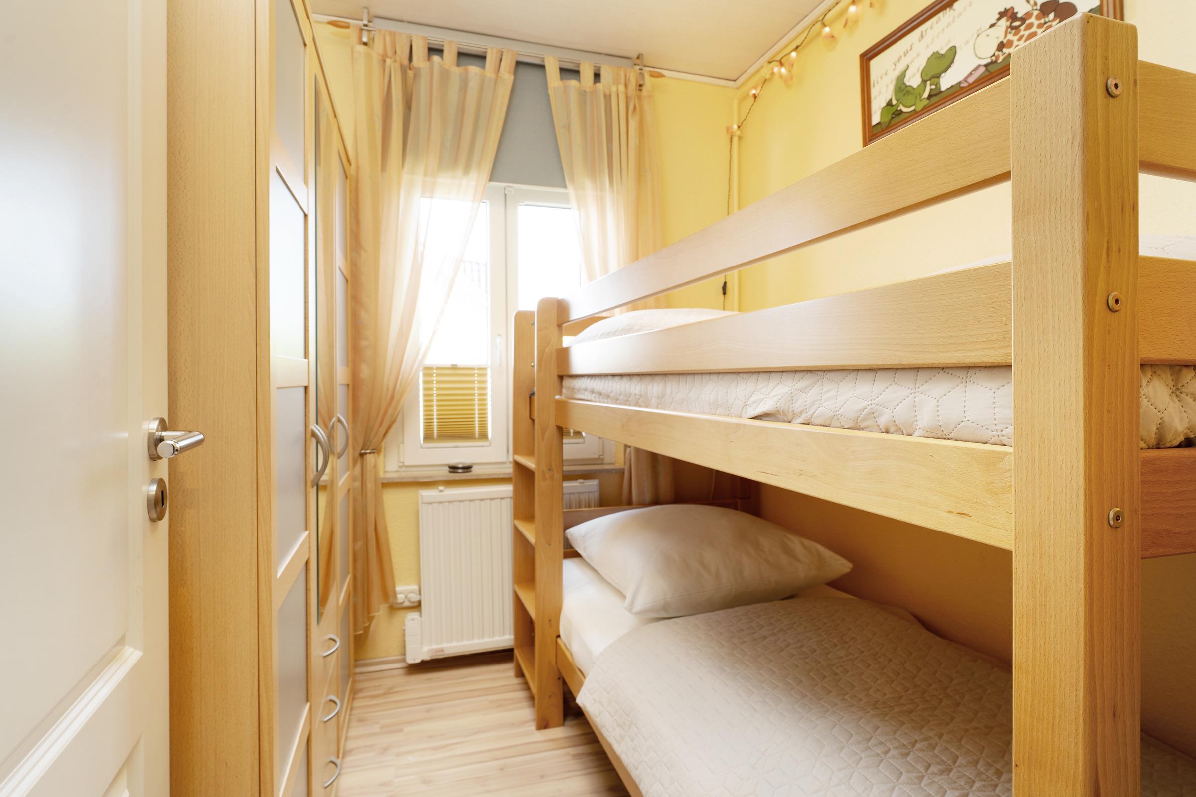 Im separaten Schlafzimmer wartet ein gemütliches Etagenbett sowie ein Kleiderschrank auf Sie.