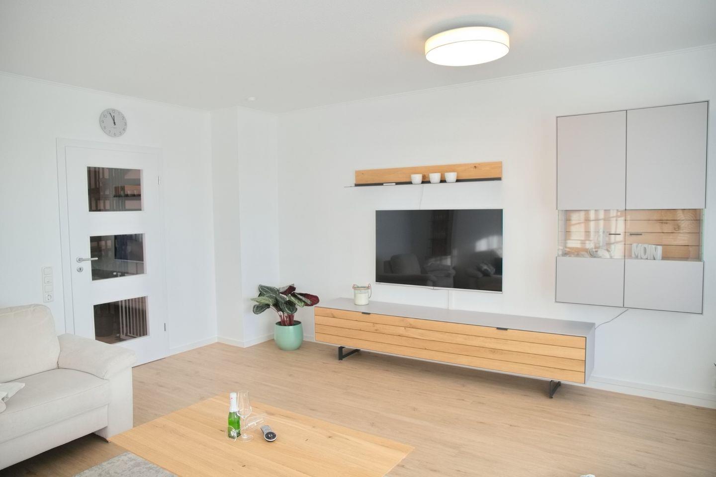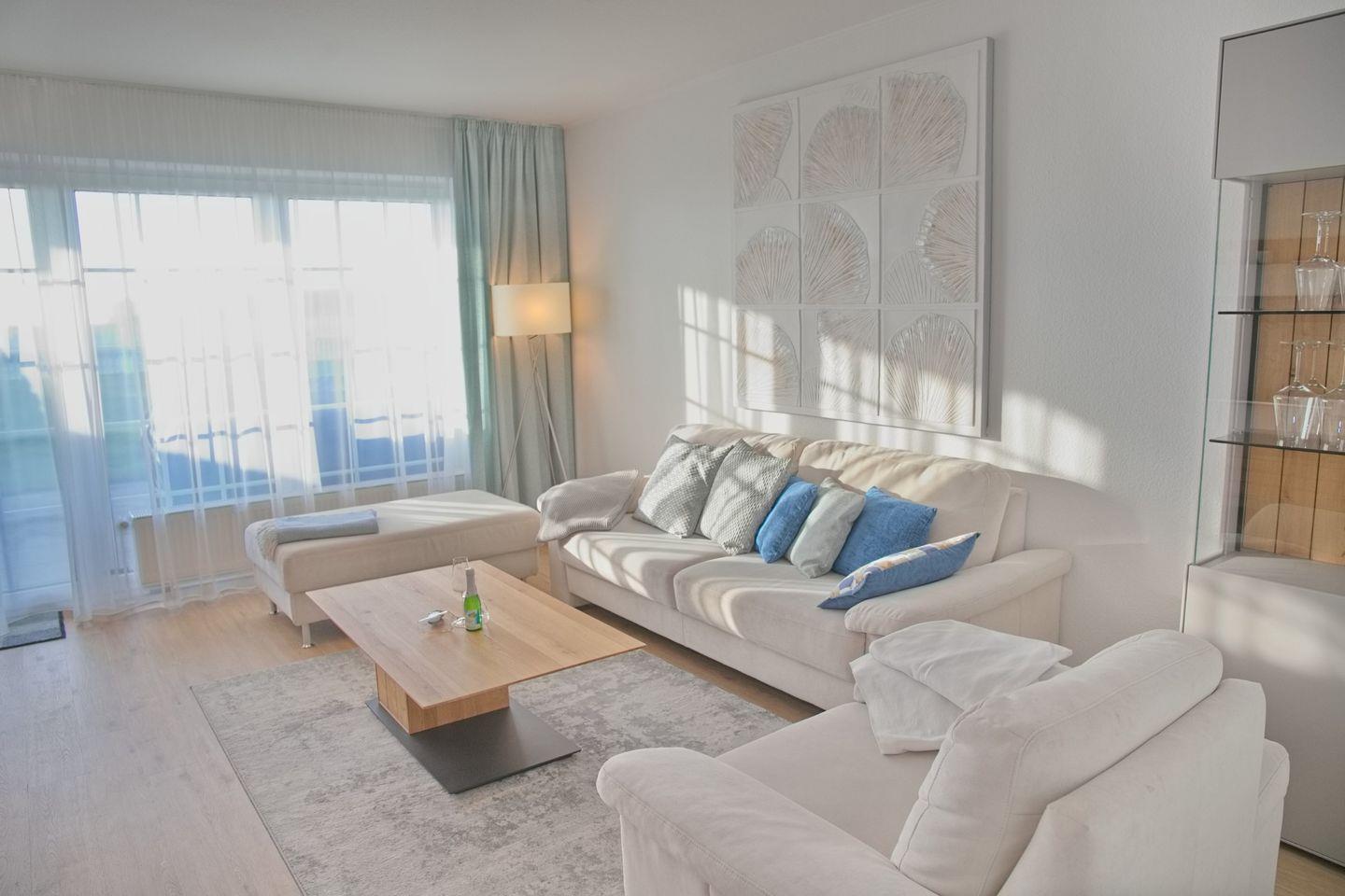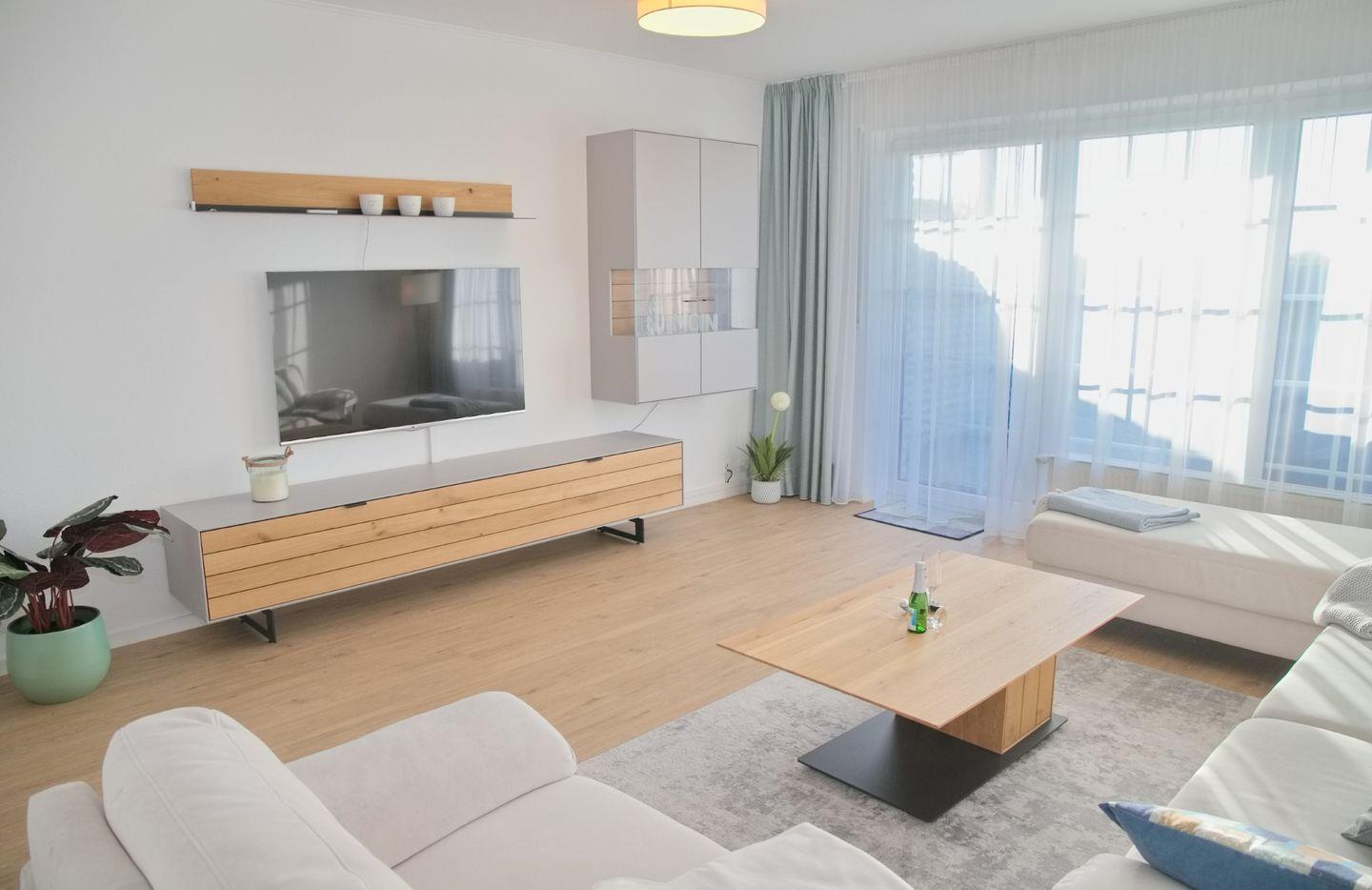• Wohnzimmer: Gemütlich und einladend, ideal für entspannte Abende vor dem Fernseher nach einem aufregenden Tag am Strand.