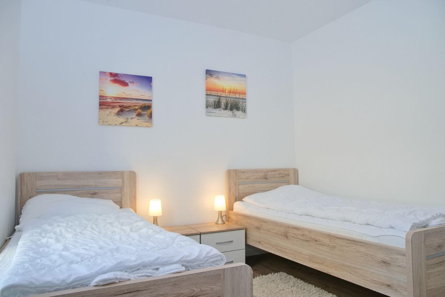 Auch das zweite Schlafzimmer besticht mit einem Doppelbett und hochwertigen Matratzen (ca. 180x200cm). Ein Flat- TV darf hier selbstverständlich nicht fehlen! In dem Kleiderschrank und der Kommode finden Sie ausreichend Stauraum für Ihre Urlaubsgarderobe.