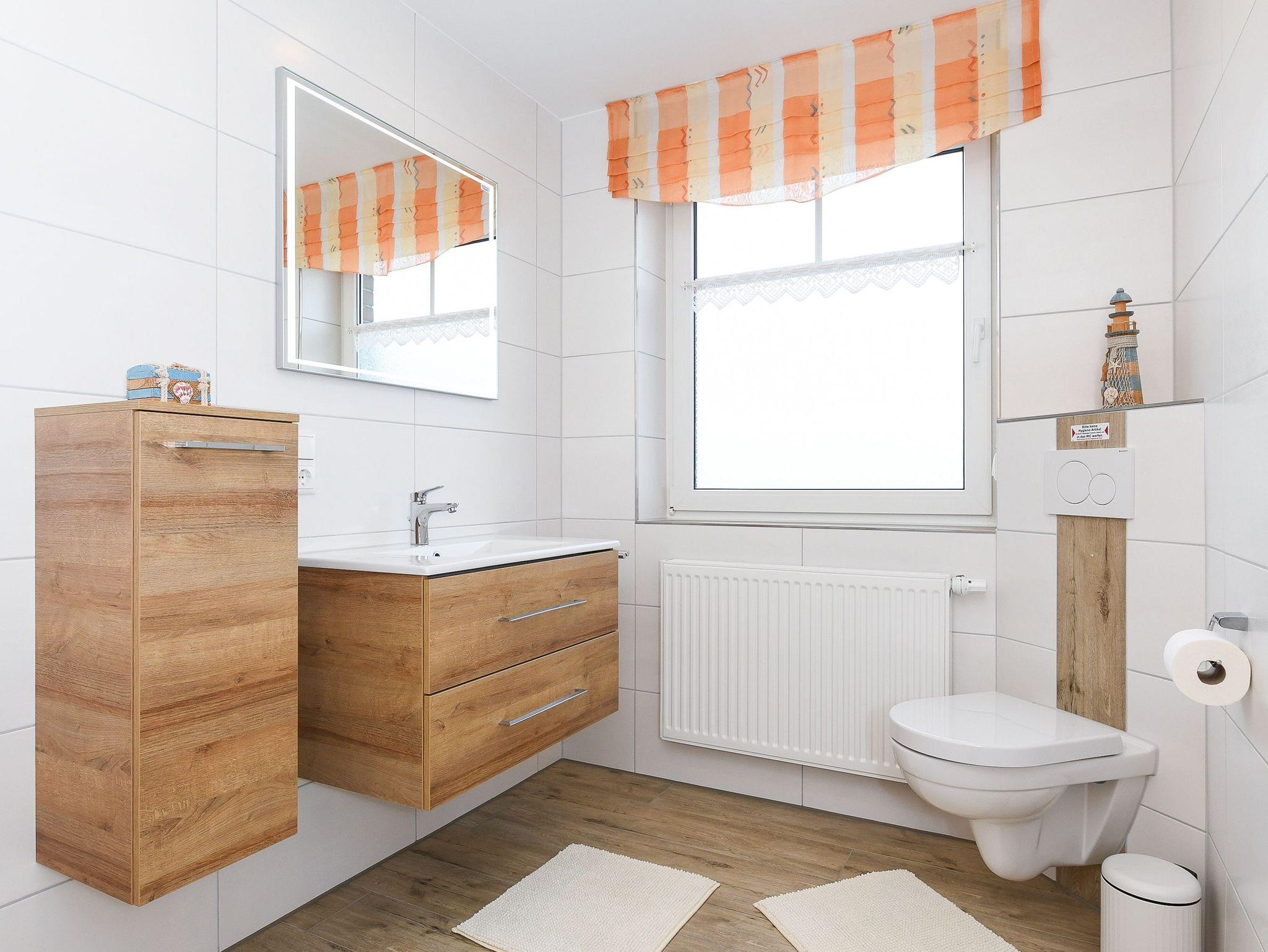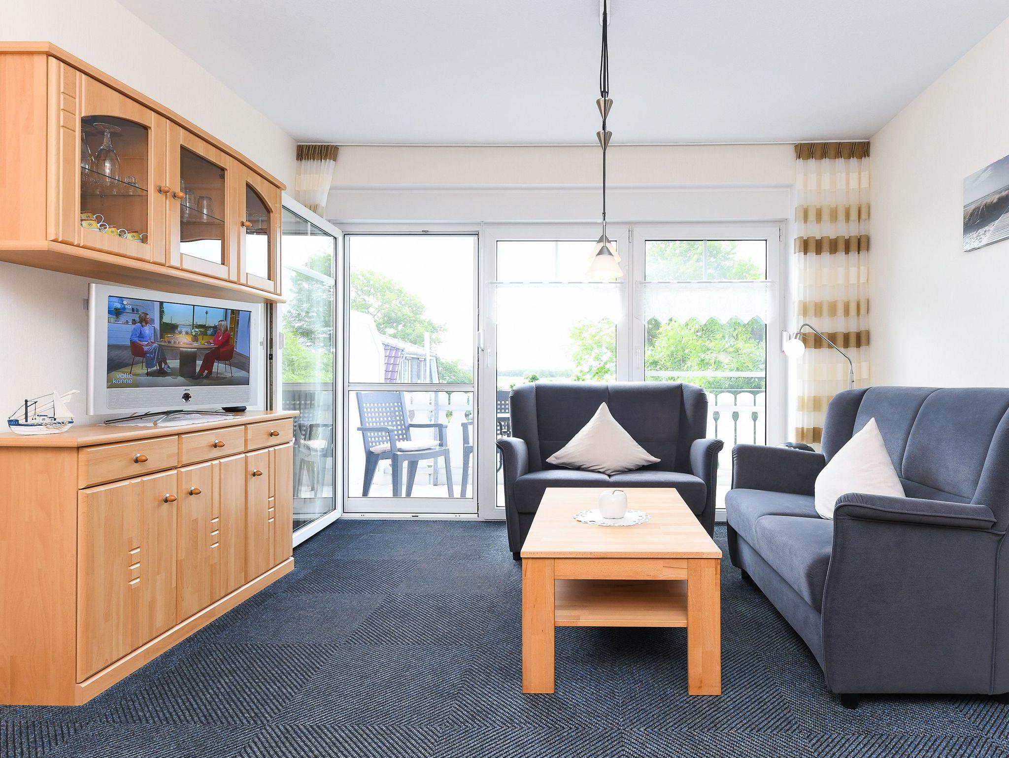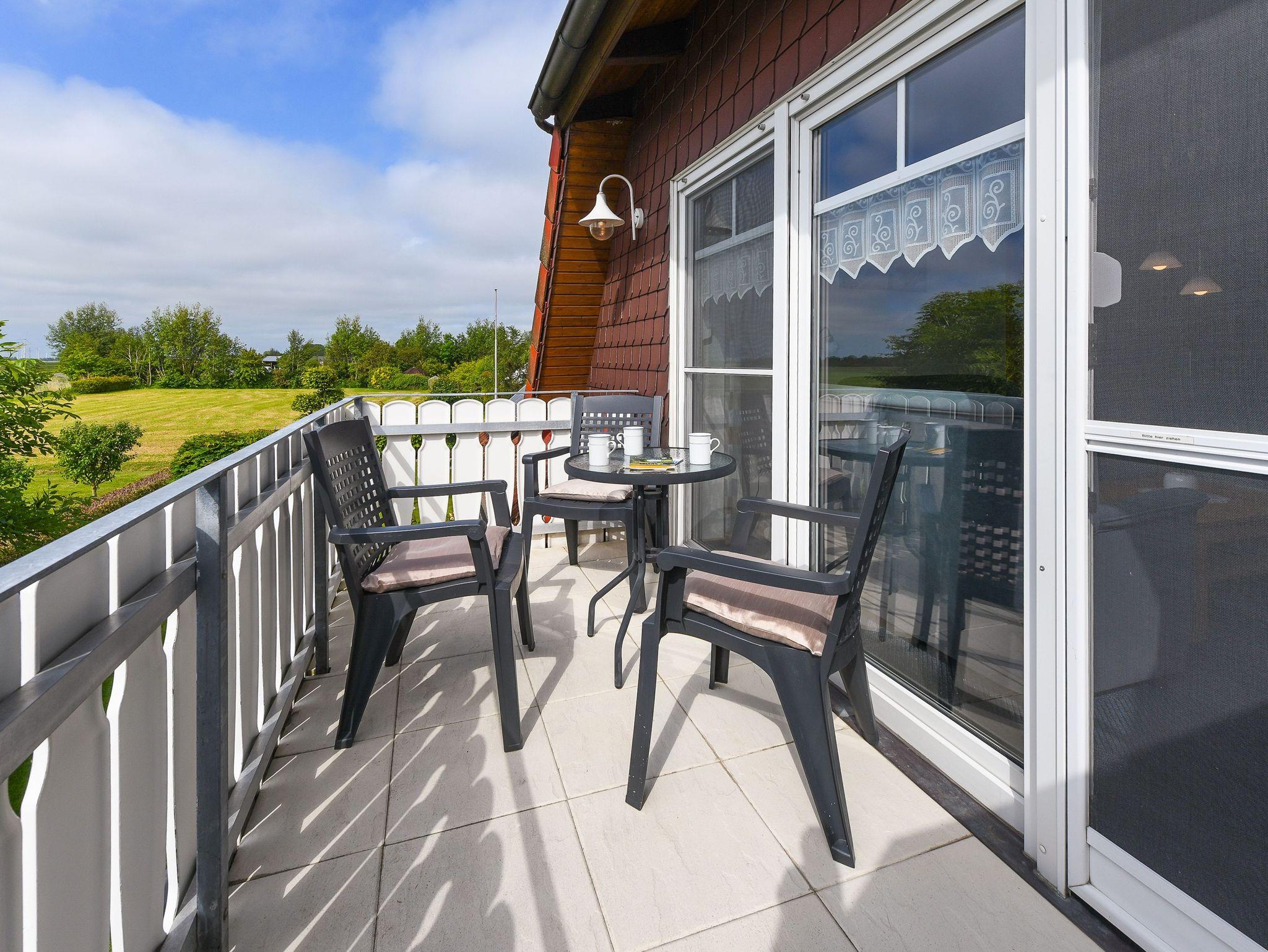 Größe ca. 60 Quadratmeter, Wohnraum mit integrierter Küche, Schlafzimmer, zweites separates Schlafzimmer/Kinderzimmer, Badezimmer mit Dusche, Waschtisch und WC, Obergeschoss, Balkon, Koffer-/Abstellraum, optimal für 2 bis 3 Personen.