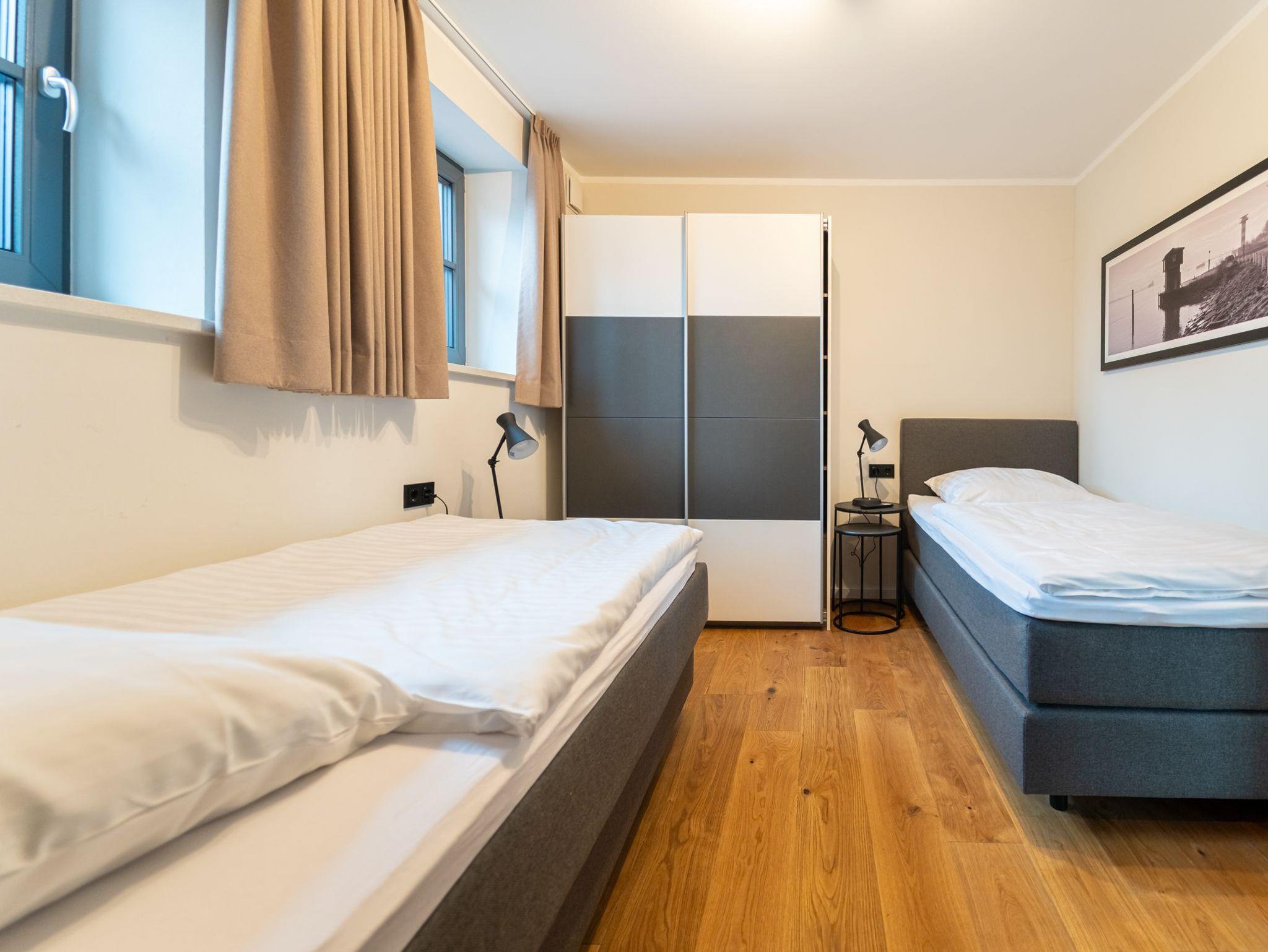 Die Wohnungen verfügen über zwei Schlafzimmer, ein Badezimmer und Wohnzimmer mit Küchenzeile. Das zweite Schlafzimmer hat zwei Einzelstehende Betten