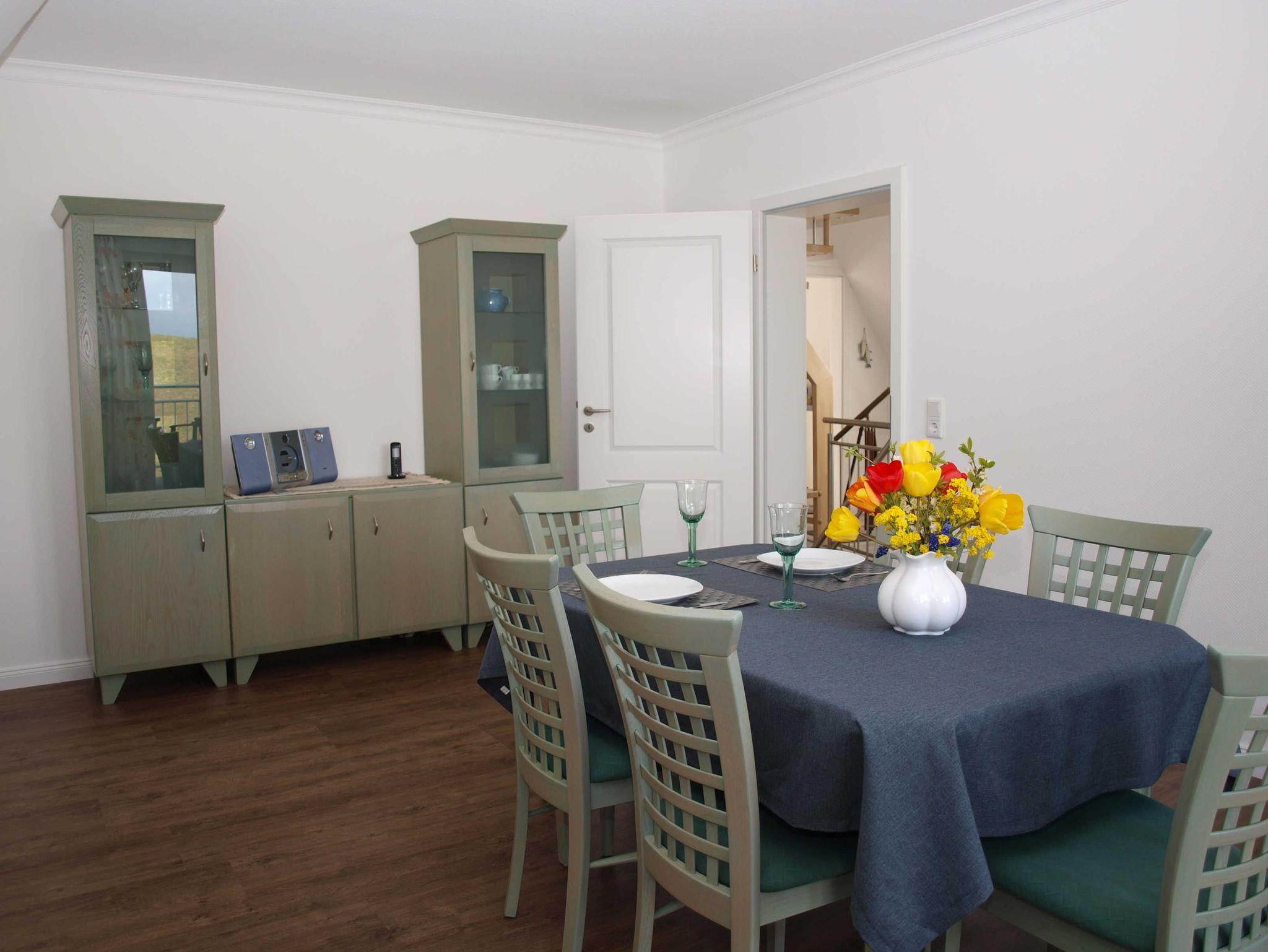 Auf 88 qm verteilen sich ein Esszimmer zum Deich ausgerichtet mit Balkon, sowie ein Bad mit Dusche und 2 Waschbecken. Ein großzügiges Schlafzimmer mit Doppelbett finden Sie zum Garten ausgerichtet und eine vollständig eingerichtete Küche mit direktem Zugang zur großen Dachterrasse. Treppe rauf vom Flur aus und Sie sind im Wohnzimmer und können dort den wunderbaren Elbblick genießen. Nichtraucher - keine Haustiere.