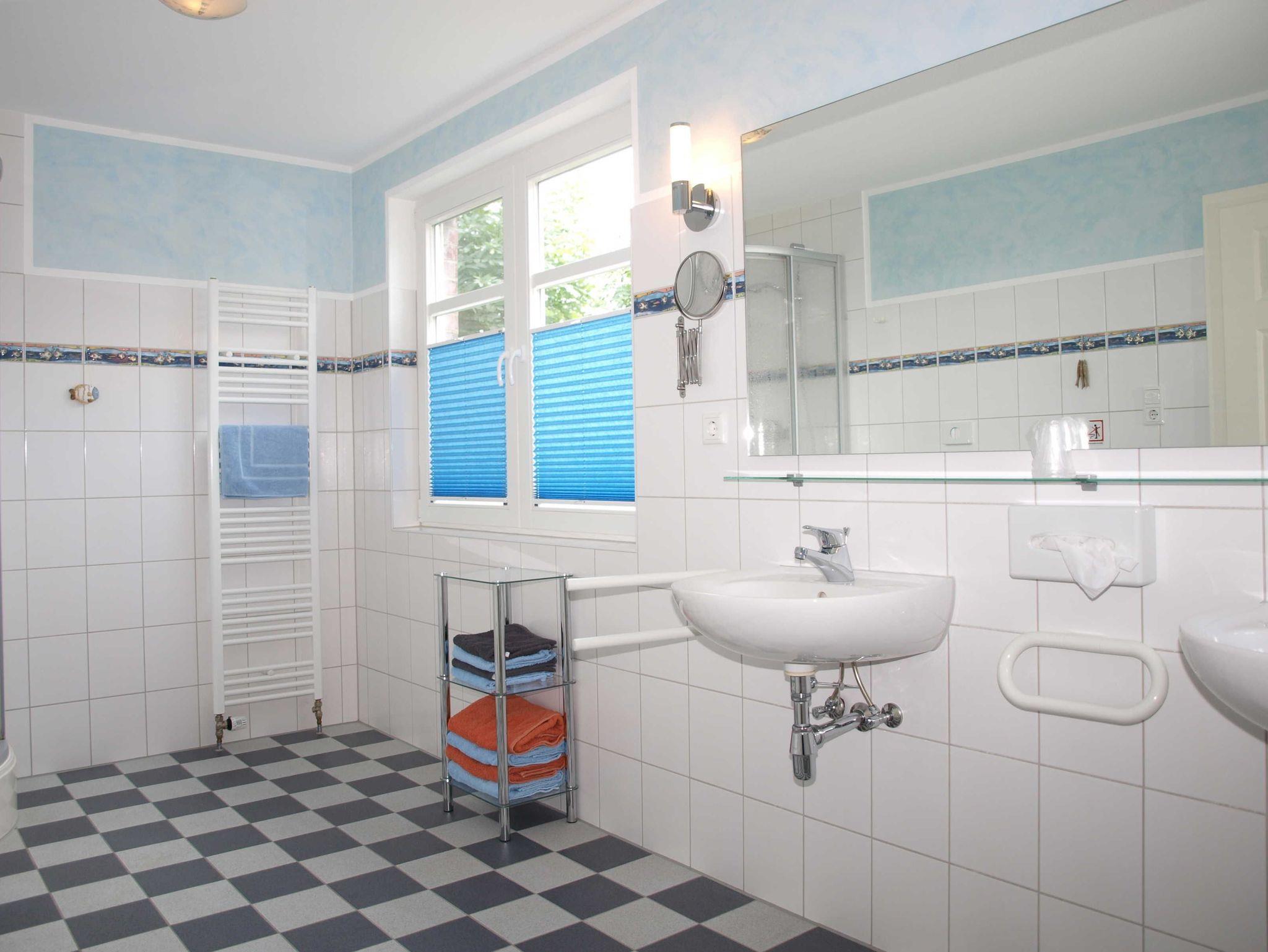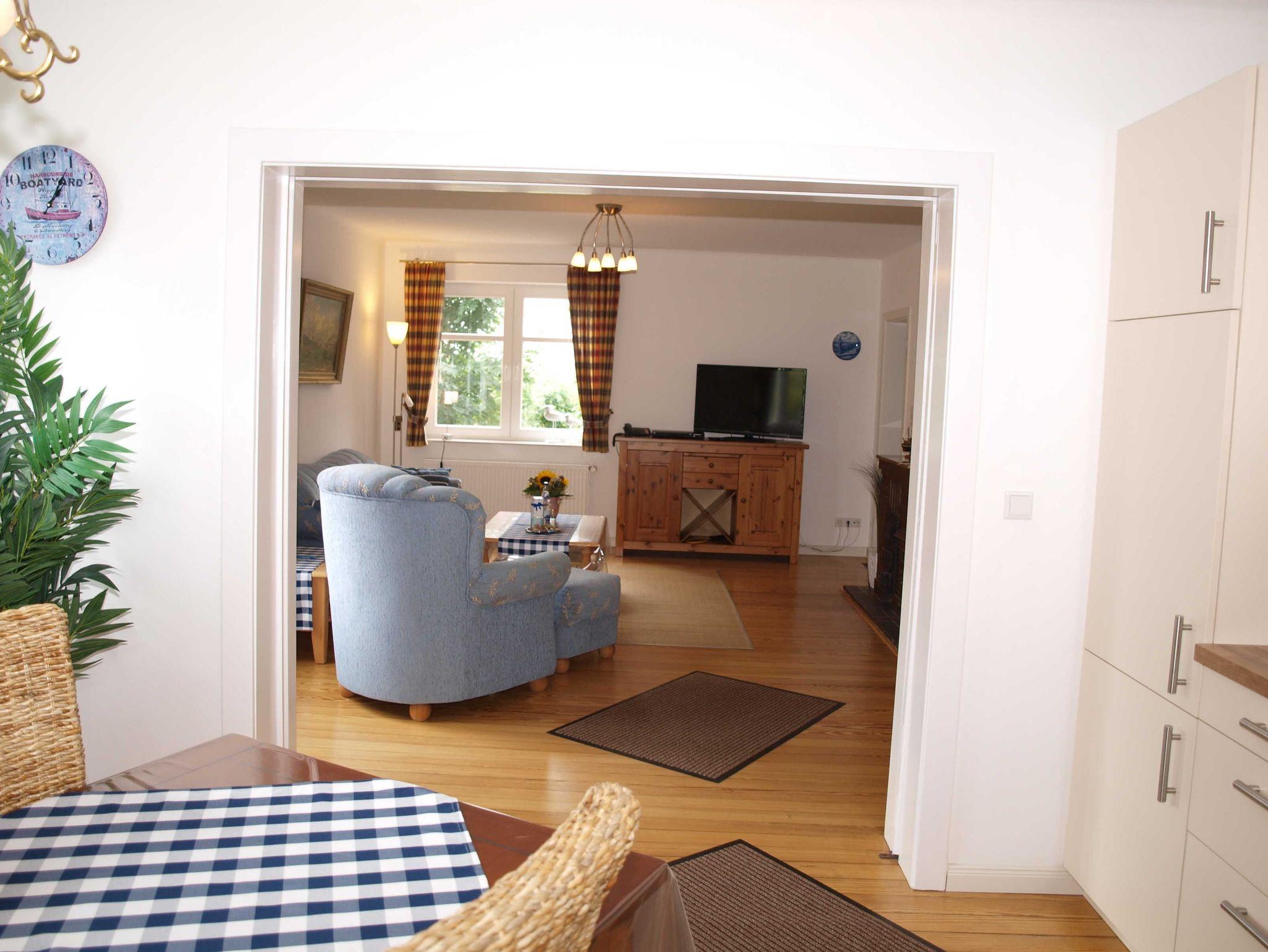 Im Erdgeschoss (Hochparterre) befindet sich die Wohnung Hauptdeck mit großzügiger Küche, einem Wohnzimmer mit Kamin sowie einem gemütlichen Schlafzimmer mit angeschlossenem, großem Badezimmer. Hinter dem Haus gelegen finden Sie Ihre Terrasse mit Strandkorb sowie Tisch und 2 Stühlen. Für Ihre Fahrräder steht im Keller ein Abstellraum zur Verfügung.
