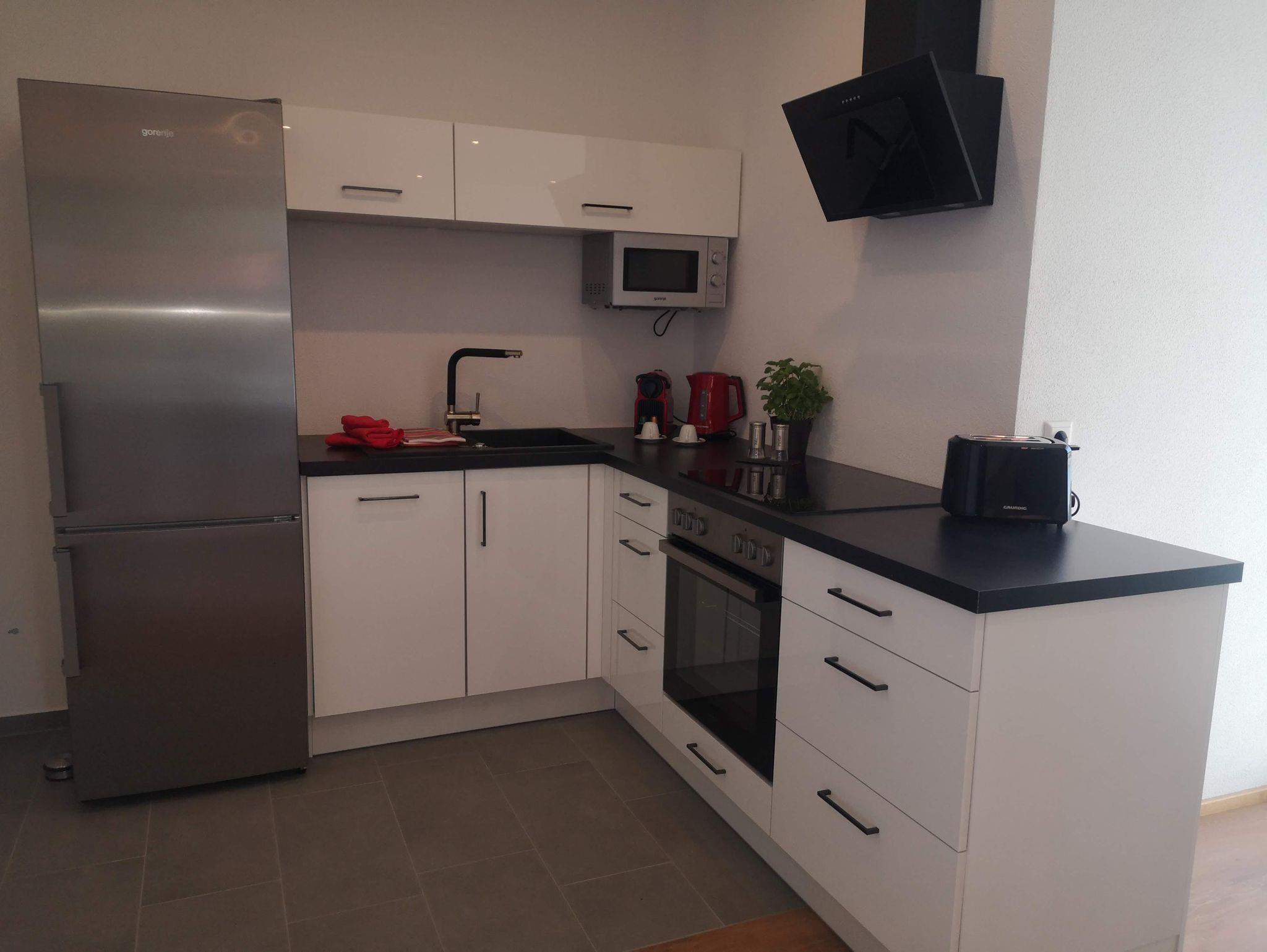 Bei unseren modern gestalteten, komfortablen Ferienwohnungen, wird es Ihnen an nichts fehlen. Alle Wohnungen verfügen über ein Bad mit Dusche und WC, sowie über ein separates WC und gut ausgestattete moderne Küchen zur Selbstversorgung. In jeder Küche befindet sich eine Nespresso Kaffeemaschine - die Kapseln hierzu können Sie in jedem Supermarkt erhalten oder auch gerne über uns beziehen.