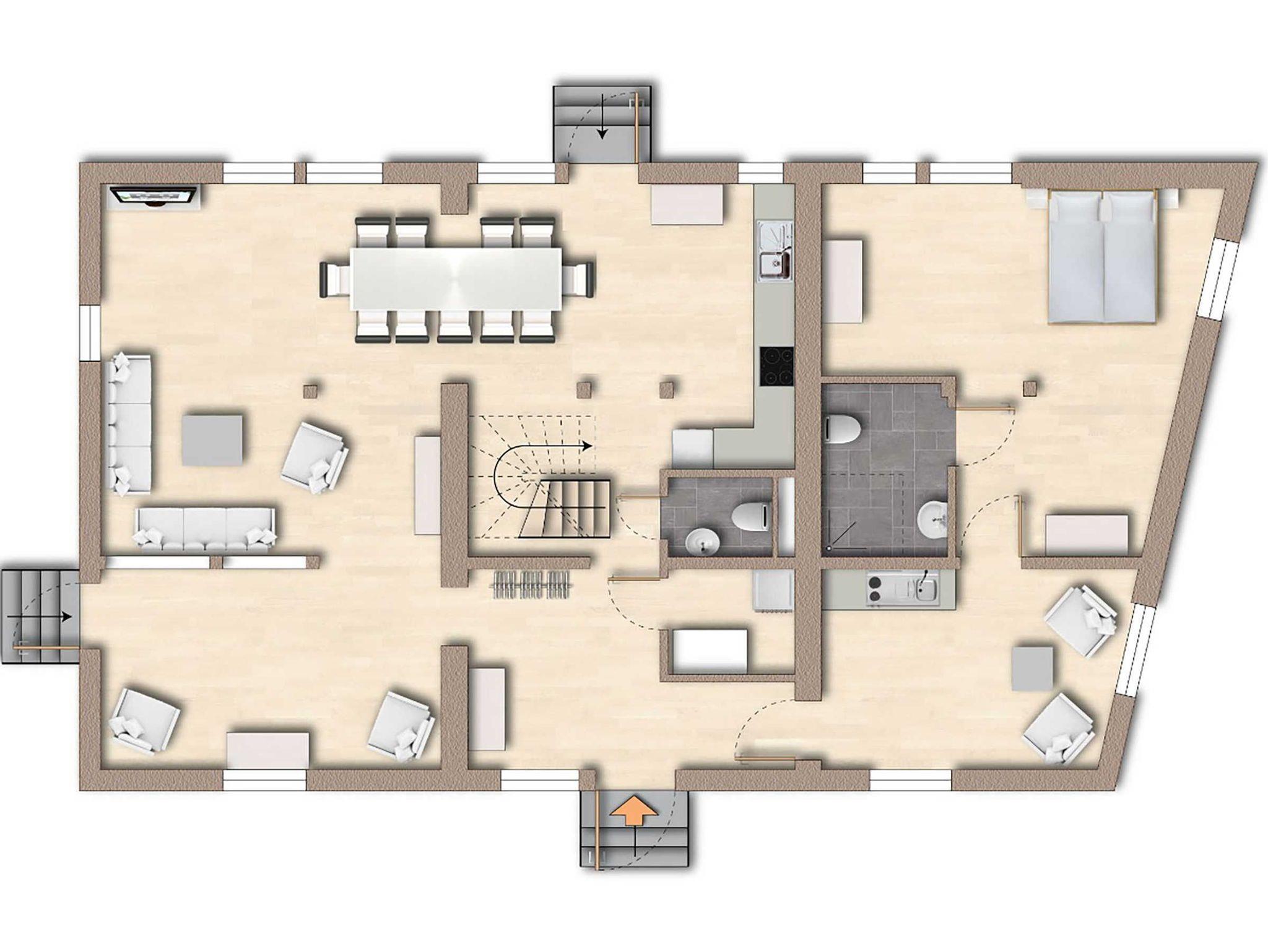 - 3 Bäder mit Dusche und WC