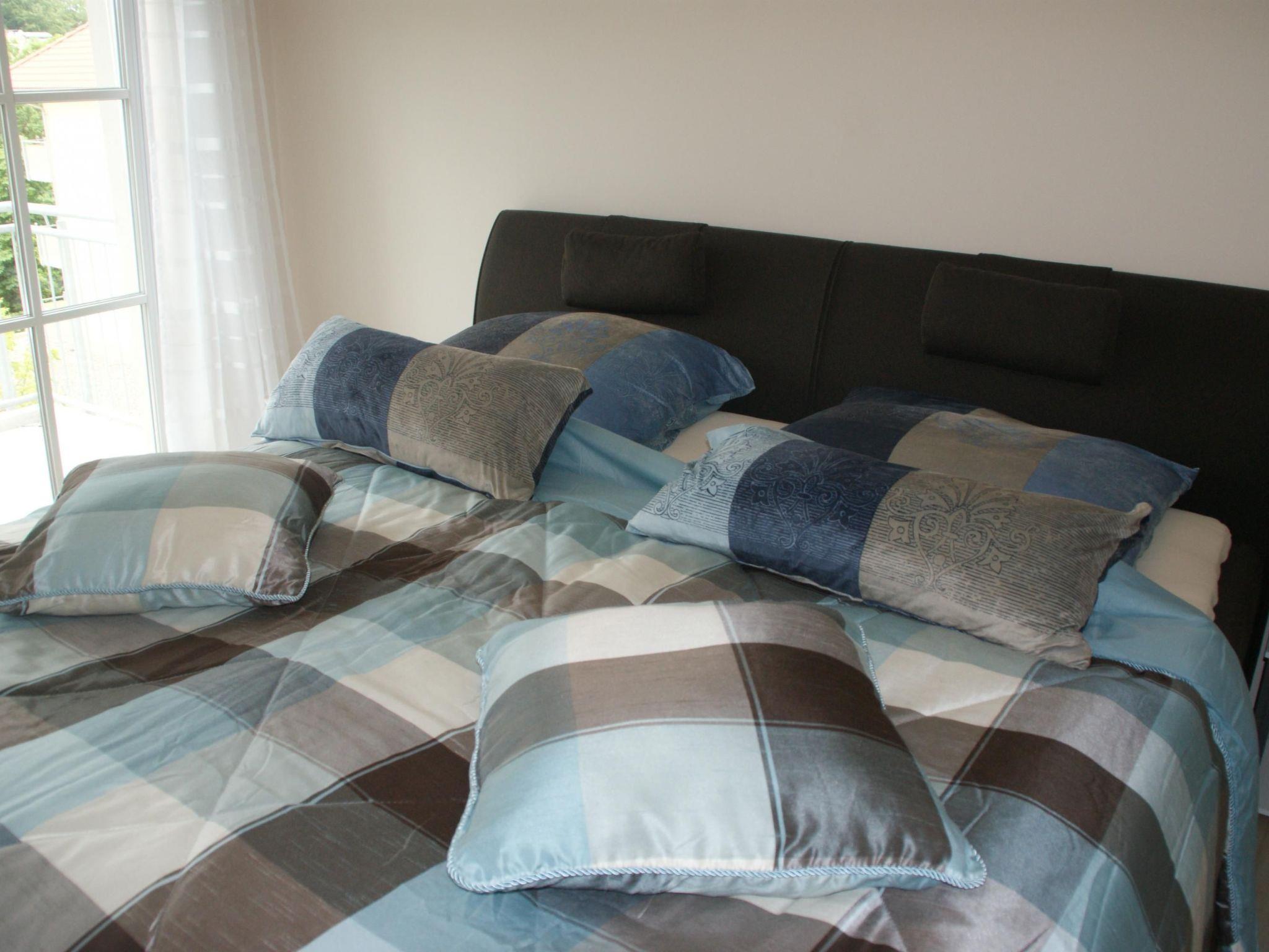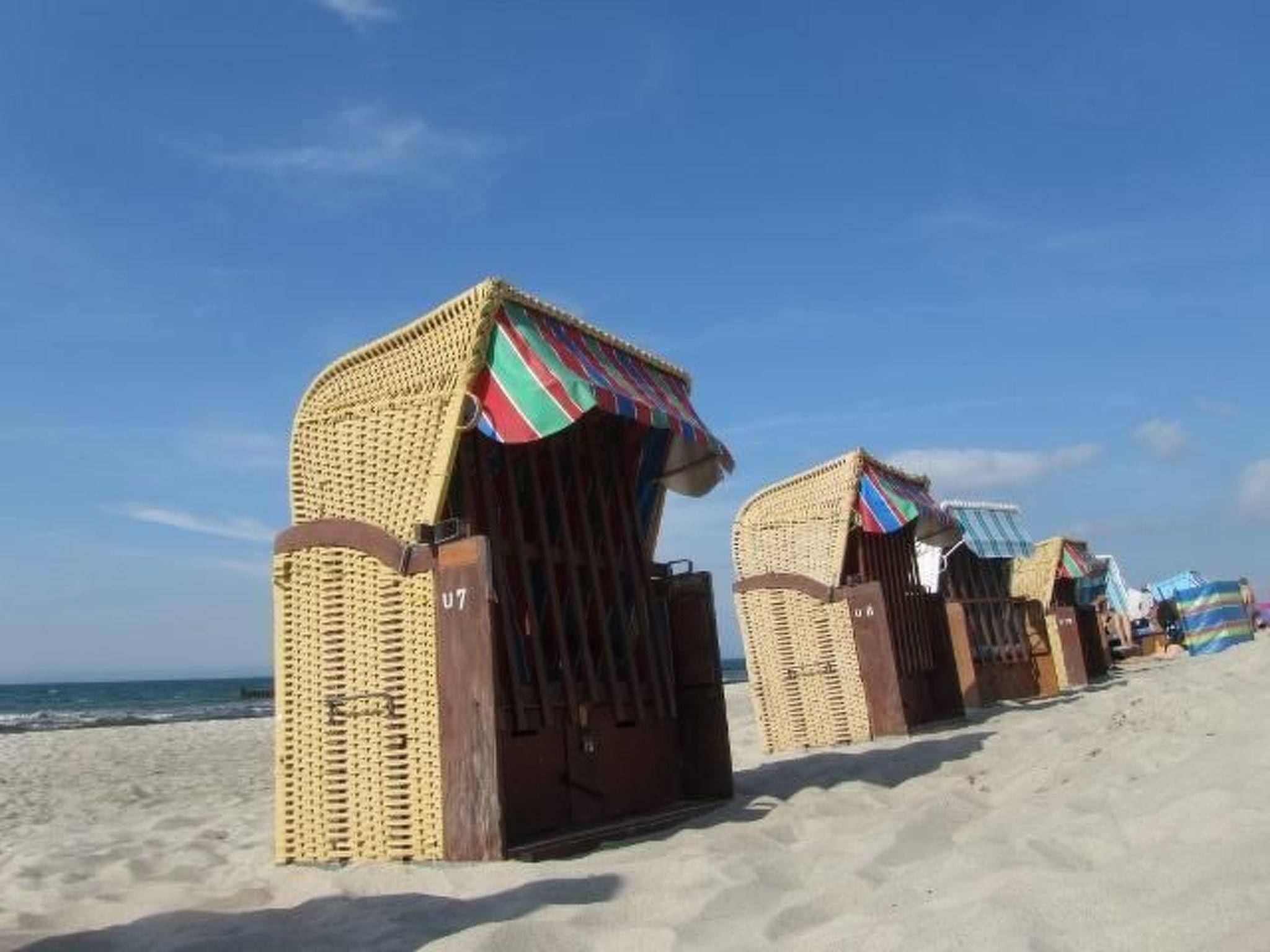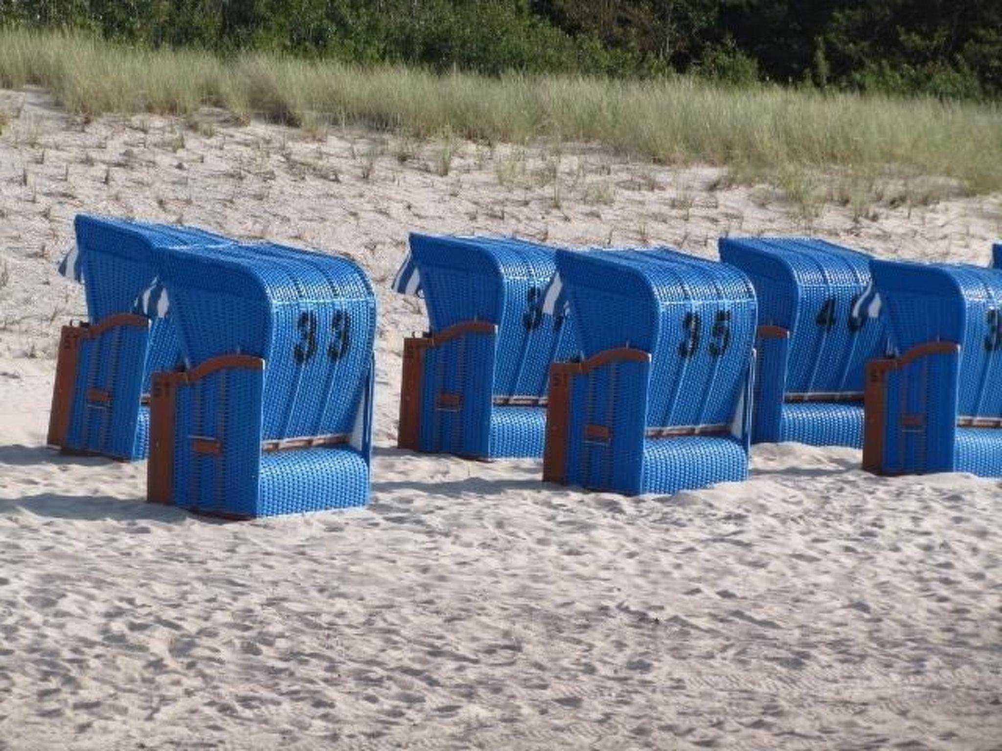 The holiday flat offers you a spacious living room with a cosy leather sofa and the best technology. The adjoining open-plan kitchen leaves nothing to be desired. Four seats, fridge, freezer compartment, cooker, microwave, toaster, coffee machine, kettle, fully automatic coffee machine, plenty of crockery, blender, casserole dish, purée maker, everything a chef's heart desires can be found in high-quality form. The flat has two balconies. The larger of the two adjoins the living room and kitchen. On this balcony there are four chairs, a dining table, a side table for the barbecue, a swing for one person and two parasols. Here you can enjoy the sun during the day. The flat has two bedrooms. You will sleep like a king, as the beds are a dream. In the larger bedroom you will find a 200 x 200 cm box-spring bed with high-quality mattresses. A high entrance and the soft topper on the large bed will make every back beam with joy. A large wardrobe is perfect for storing your holiday luggage. And in the evening, when the children may already be asleep, you can enjoy the evening sun with a glass of wine on the second balcony, which is furnished with two wicker chairs and a table. The second bedroom also offers a high level of comfort. Here you will find two separate box-spring beds measuring 100 x 200 cm. Here, too, you will dream wonderfully. The bathroom has a washbasin, a WC, a large walk-in shower, a washing machine and a tumble dryer. You will also find a shower towel, two hand towels, a flannel, tea towels, two guest towels and a bath mat for each guest. Consumables for the first few days are included in the price (washing-up liquid, toilet paper, kitchen roll, dishwasher tablets etc.). In the holiday flat "Meerestraum" you will certainly feel very comfortable, because we have furnished the flat with a lot of love. You will find the colours of your holiday harmoniously coordinated in the individual rooms: the blue of the sea, the sandy colours of the beach and the green of the trees.