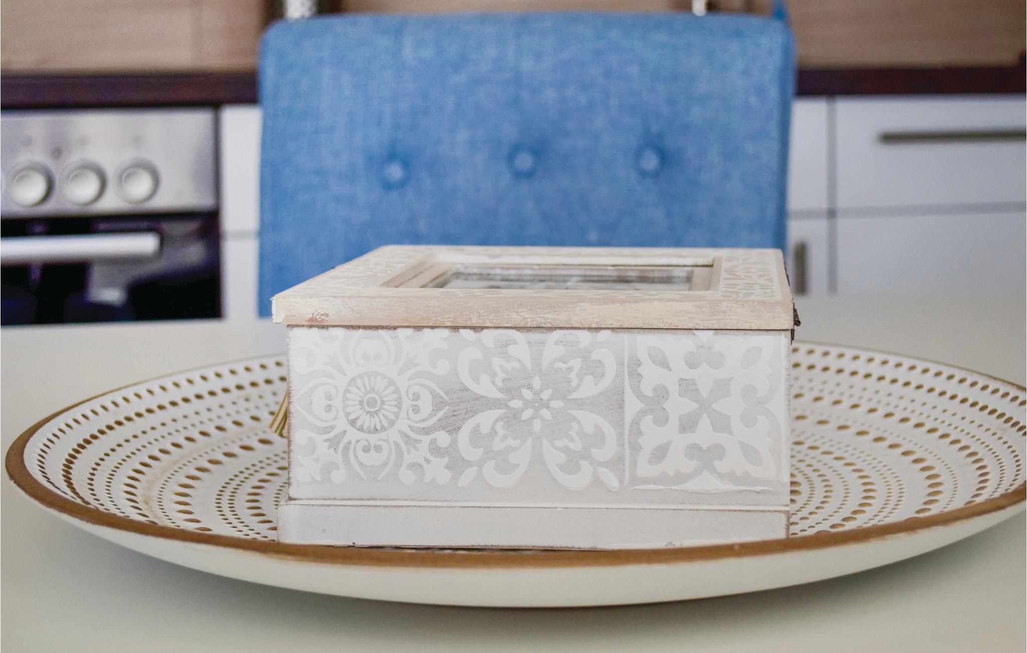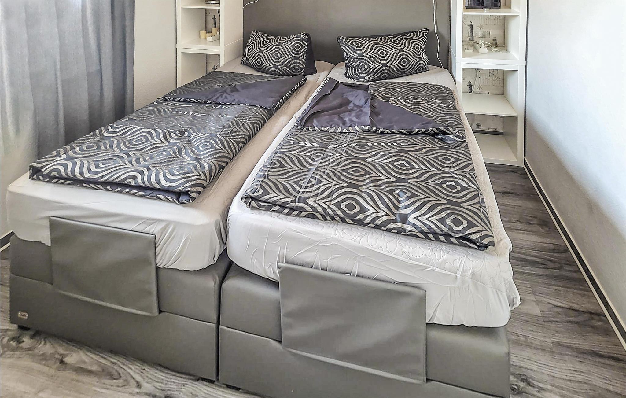 Det separate soveværelse har en komfortabel dobbeltseng. Der er også installeret myggenet i soveværelsesvinduerne. To ekstra sovemuligheder (sovesofaer) er placeret i opholdsstuen med et tekøkken af høj kvalitet.