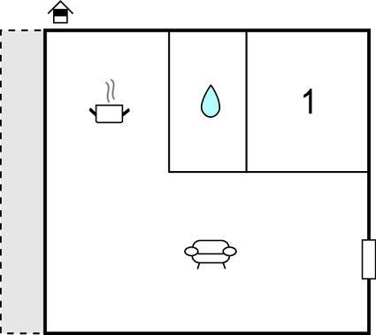 Opholdsstue/køkken - 1 Soveplads. (Sofa, madras eller lignende).