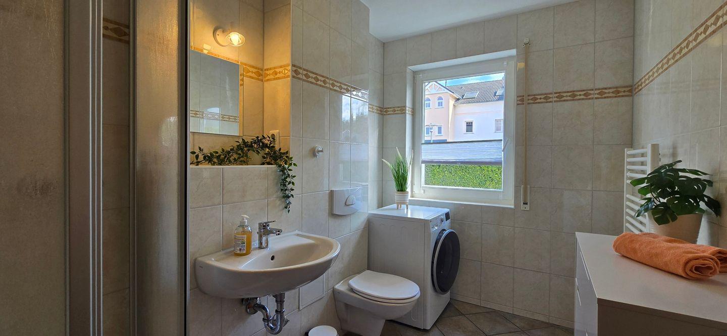 • Tageslichtbadezimmer mit Dusche, WC und Waschtisch