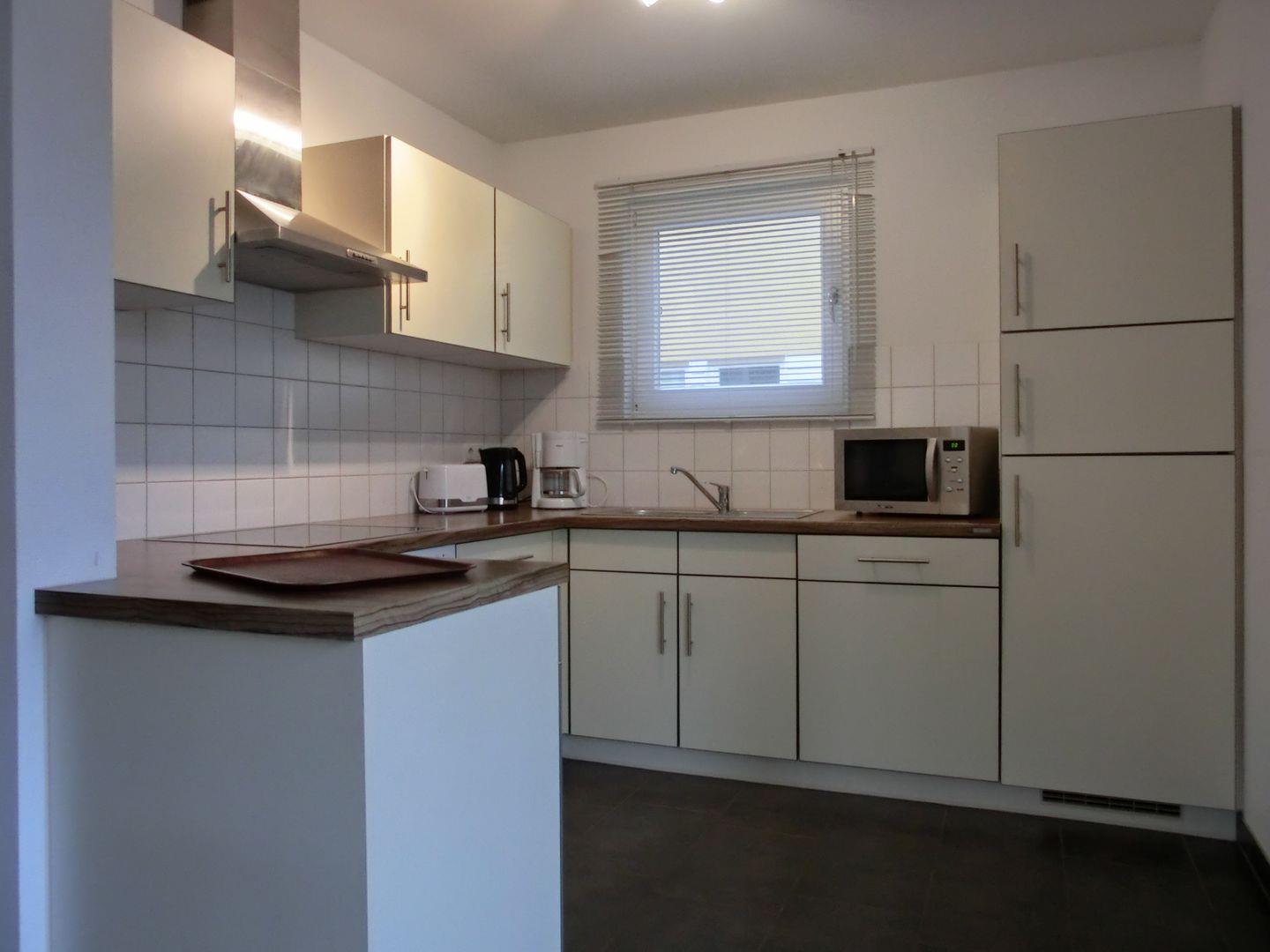 - in separater Ecke im Wohnraum eine Einbauküche inkl. Geschirrspüler, Herd mit