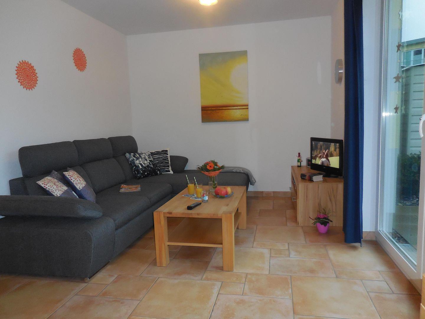 - die Ferienwohnung verfügt über einen Wohnbereich inkl. TV/Mediathek, Radio, CD- und DVD-Player