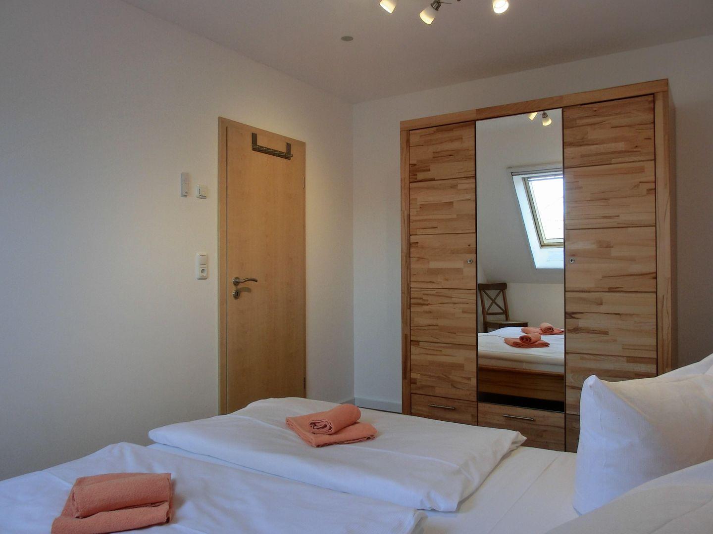 - 2 Schlafzimmer mit je einem Einzelbett (90 cm x 200 cm) beide im DG