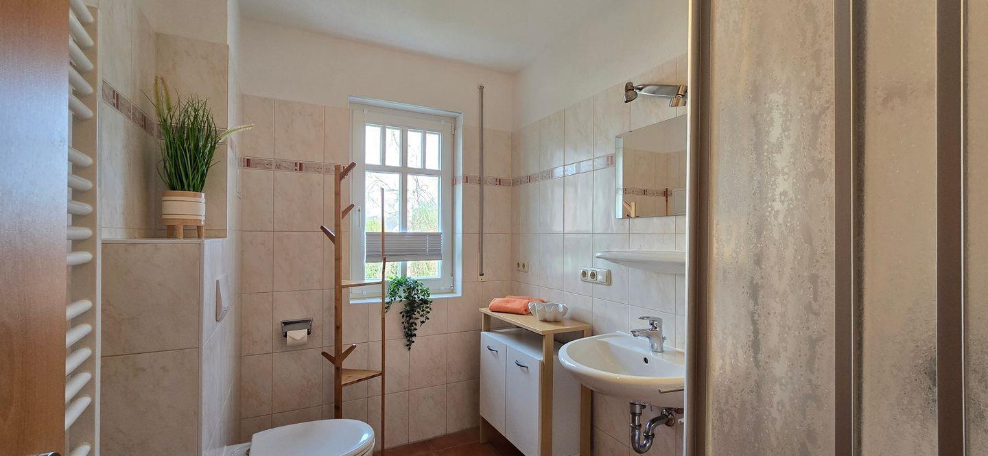 • Tageslichtbad mit Dusche, WC, Waschtisch, Haartrockner und Handtuchheizkörper