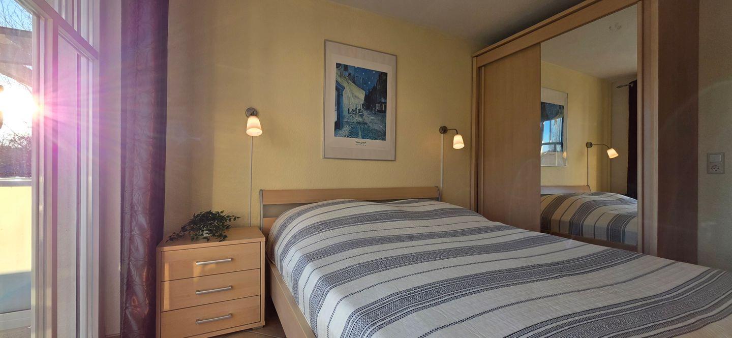 • Schlafzimmer mit Doppelbett (160 cm × 200 cm, getrennte Matratzen)