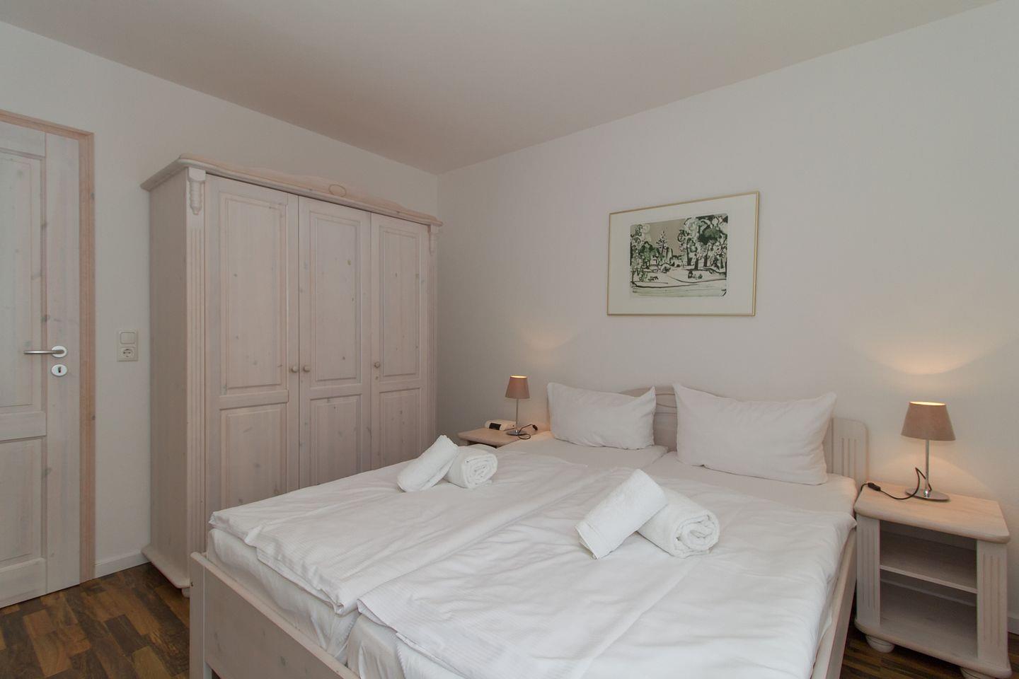 - 1 Schlafzimmer mit Doppelbett (200 cm x 180 cm, geteilte Matratze), 1 Schlafzimmer mit 2 Einzelbetten als Doppelbett (je 80 cm x 200 cm)
