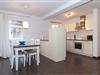 - in separater Ecke im Wohnraum befindet sich eine offene Einbauküche inkl. Geschirrspüler, Herd, Backofen, Kaffeemaschine, Toaster, Wasserkocher und ein Kühlschrank mit Gefrierteil