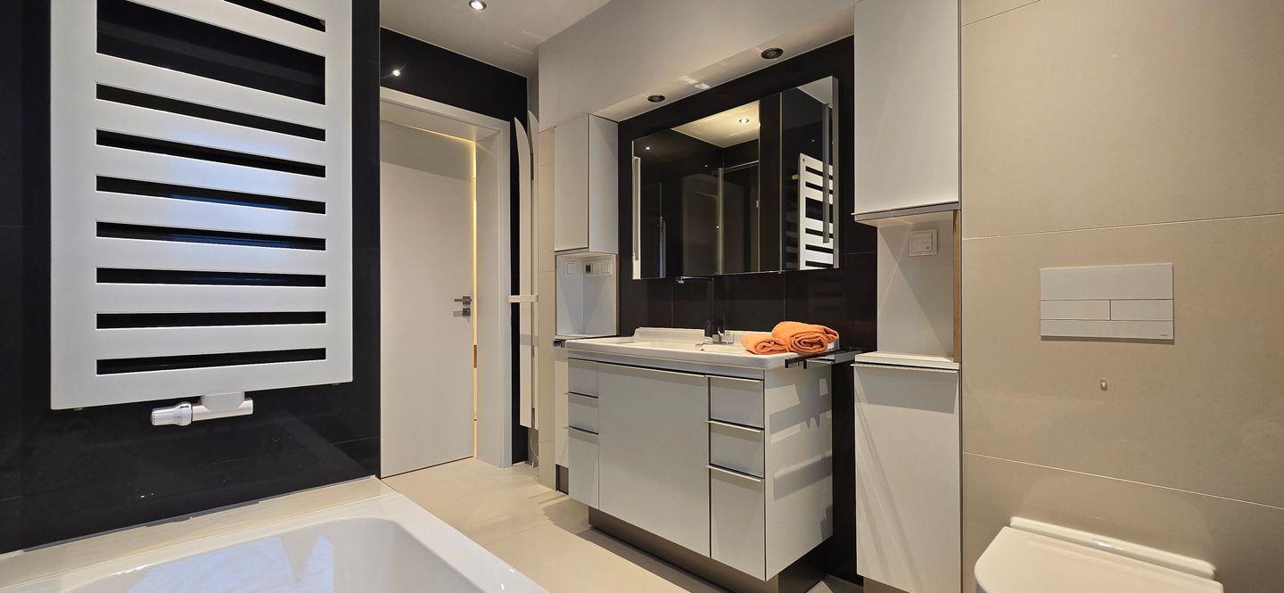 - Badezimmer: bodengleiche Dusche, Badewanne, WC, Waschbecken, Haartrockner, Gäste-WC