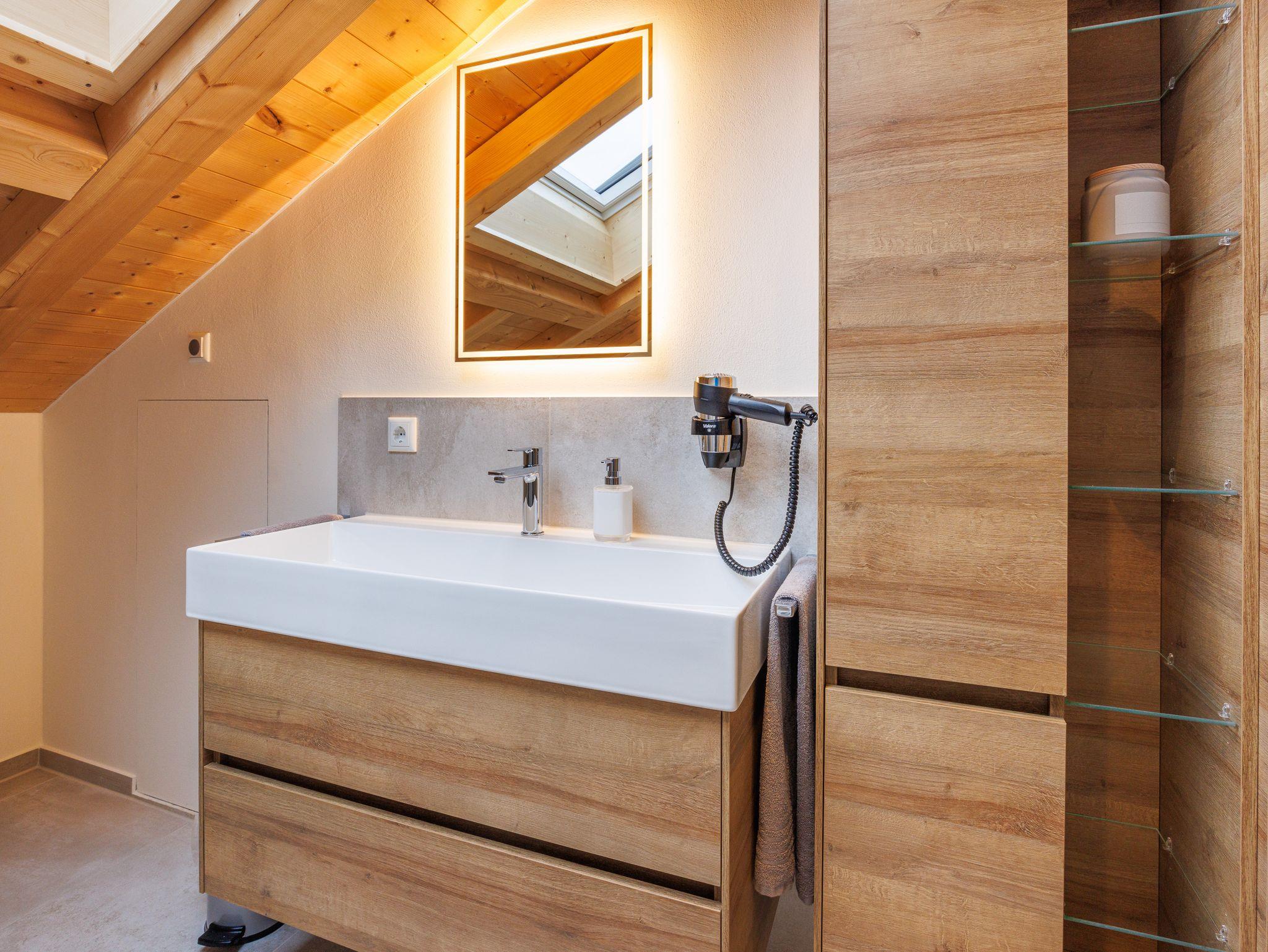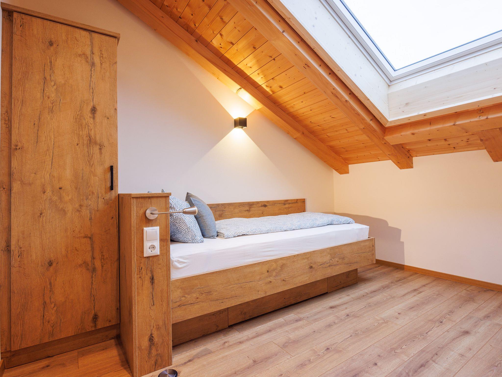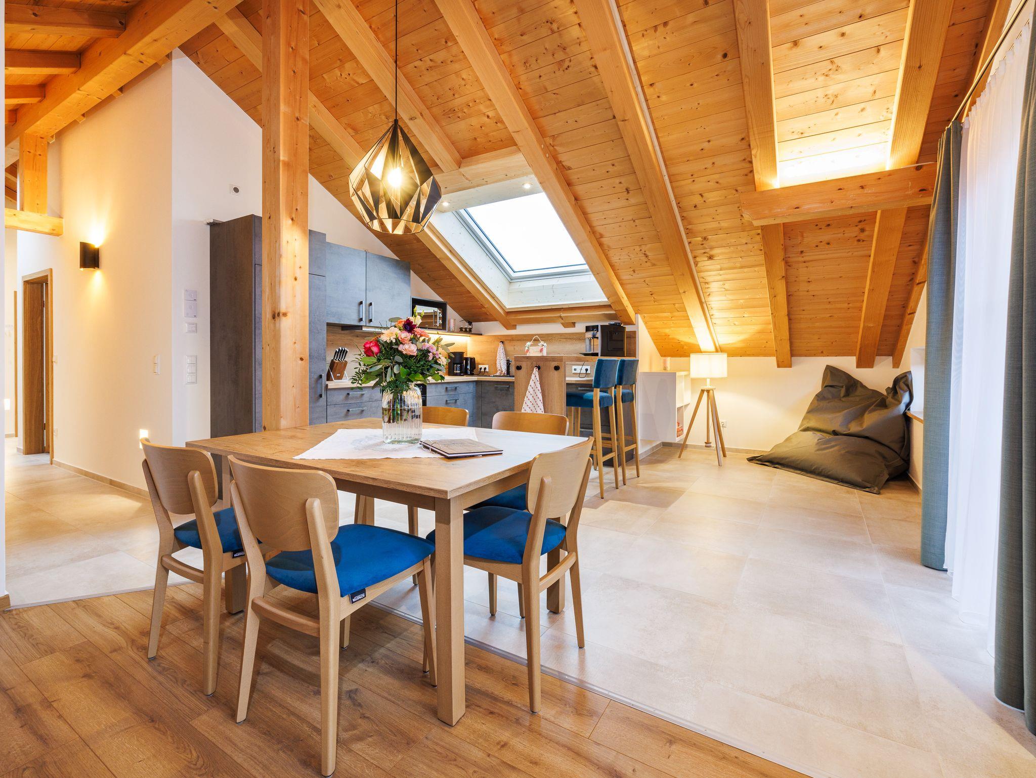 Die helle und geräumige Dachgeschoss Wohnung umfasst 2 Schlafzimmer, ein großes Wohn-und Esszimmer mit Südbalkon, ein Badezimmer und separates WC