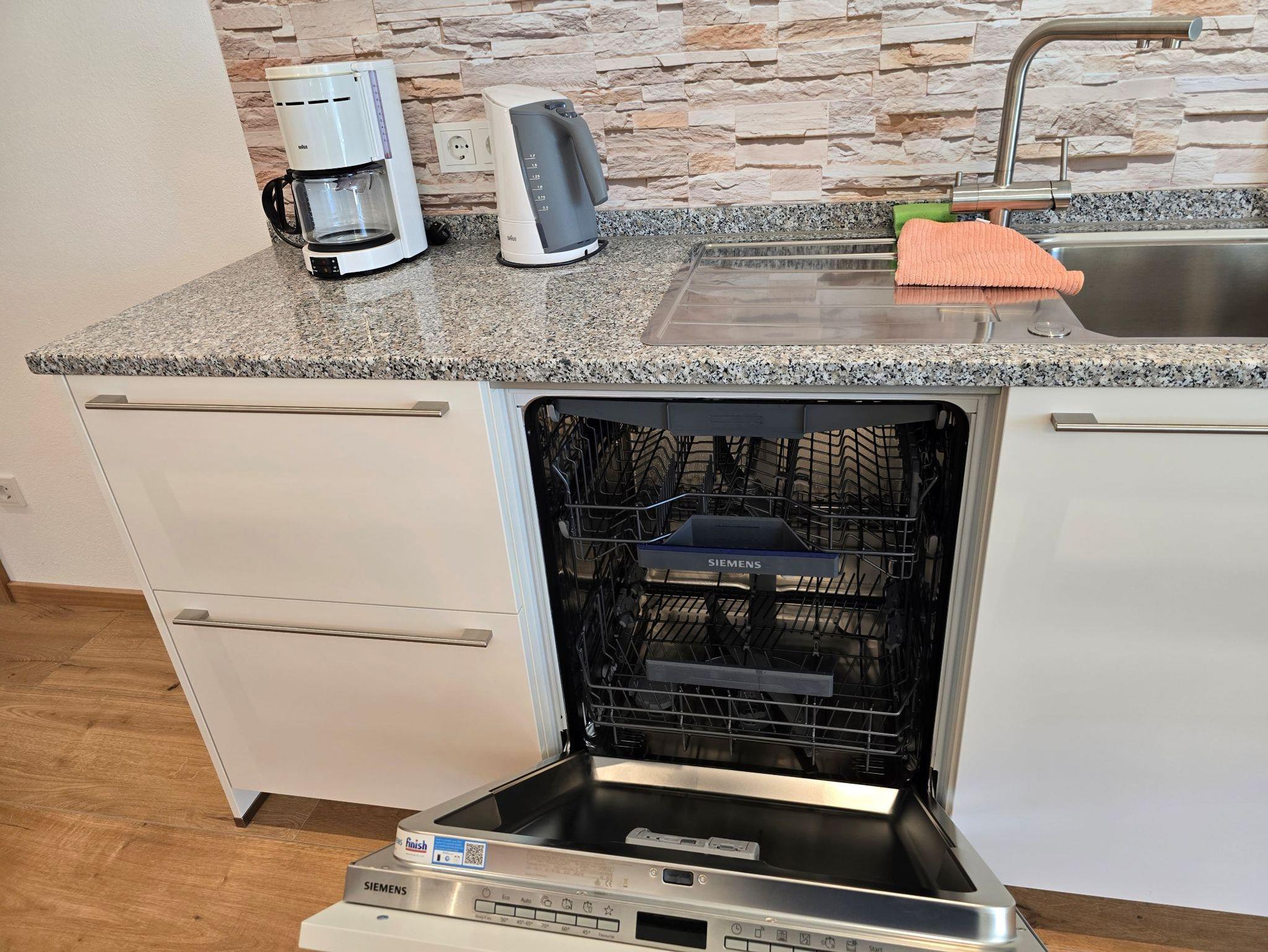 Der Boden besteht aus Holzoptik-Fliesen die sehr robust sind, sich aber trotz Fußbodenheizung subjektiv kühl anfühlen können. Wir empfehlen die Nutzung von Hausschuhen.