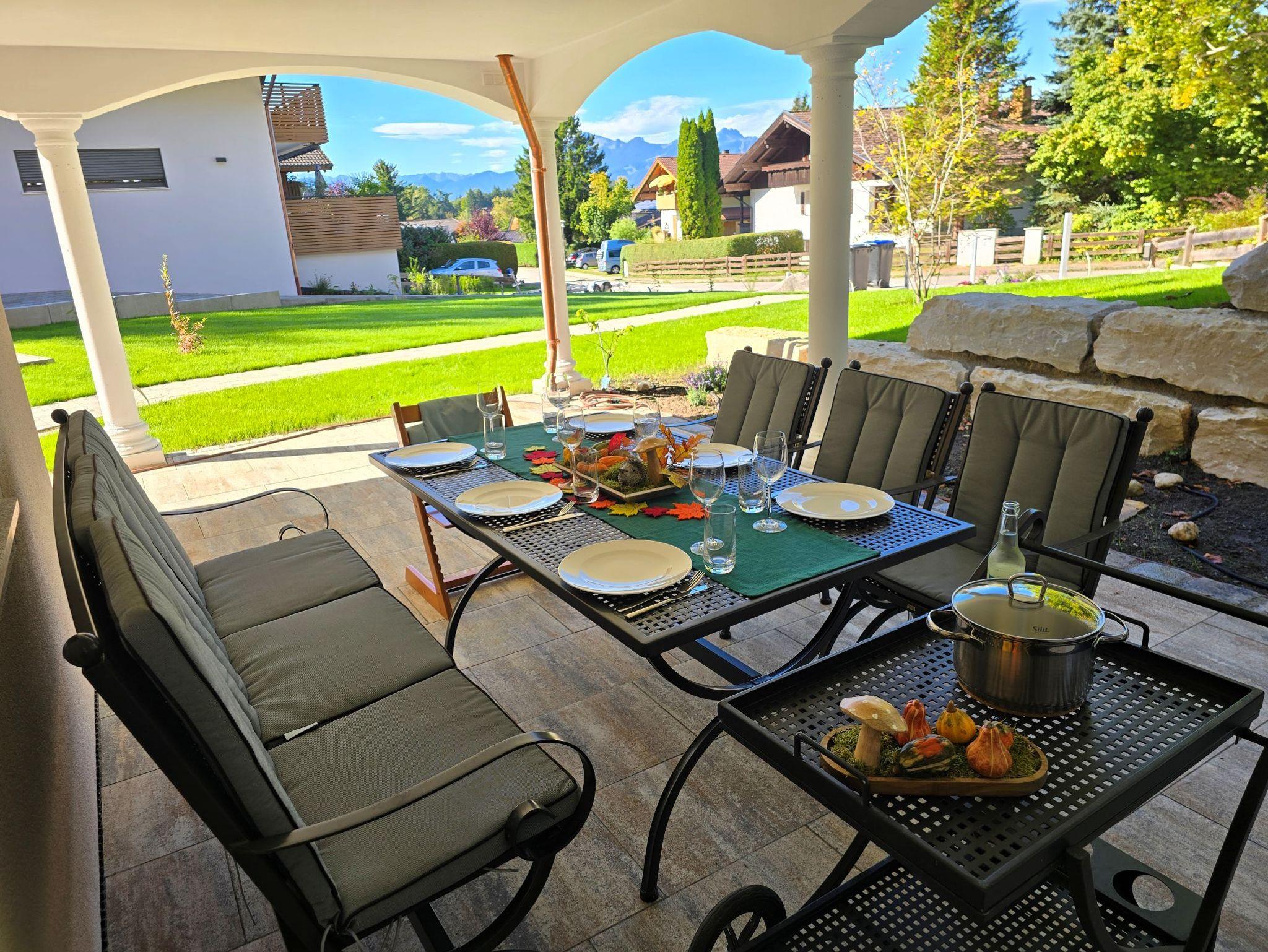 Nach einem Tag draußen – sei es eine Wanderung auf die Kampenwand oder eine Radtour rund um den Chiemsee – kehrt man zurück an einen Ort, der einfach gut tut. Die großzügige Ferienwohnung am Eichberg bietet nicht nur viel Platz im Inneren, sondern auch draußen: eine über 60?m² große, überdachte Terrasse mit Alpenpanorama. Hier lässt sich der Tag entspannt starten oder ausklingen – beim Kaffee, Grillen, Sonnen oder einfach nur mit einem guten Buch in der Hand.