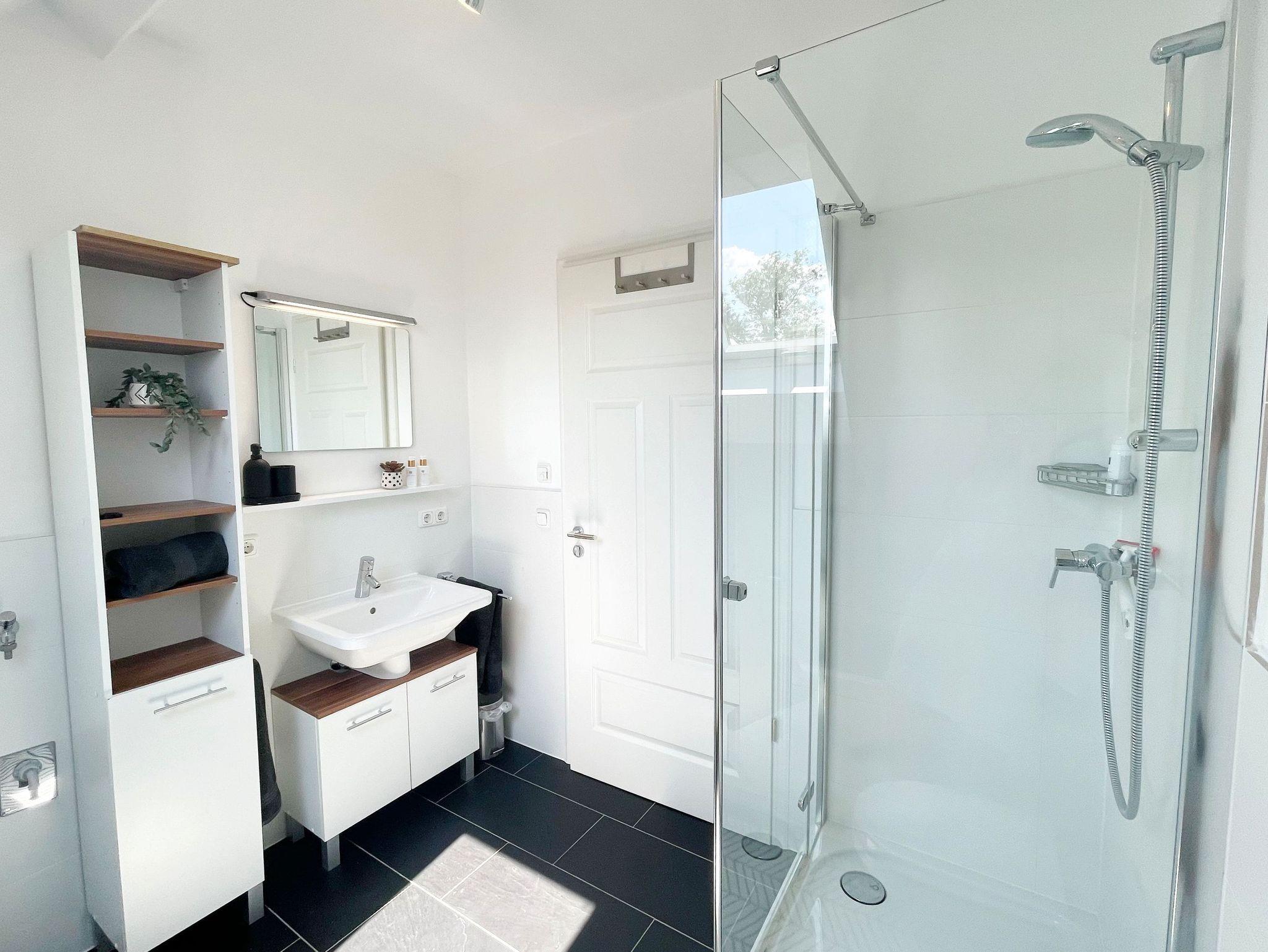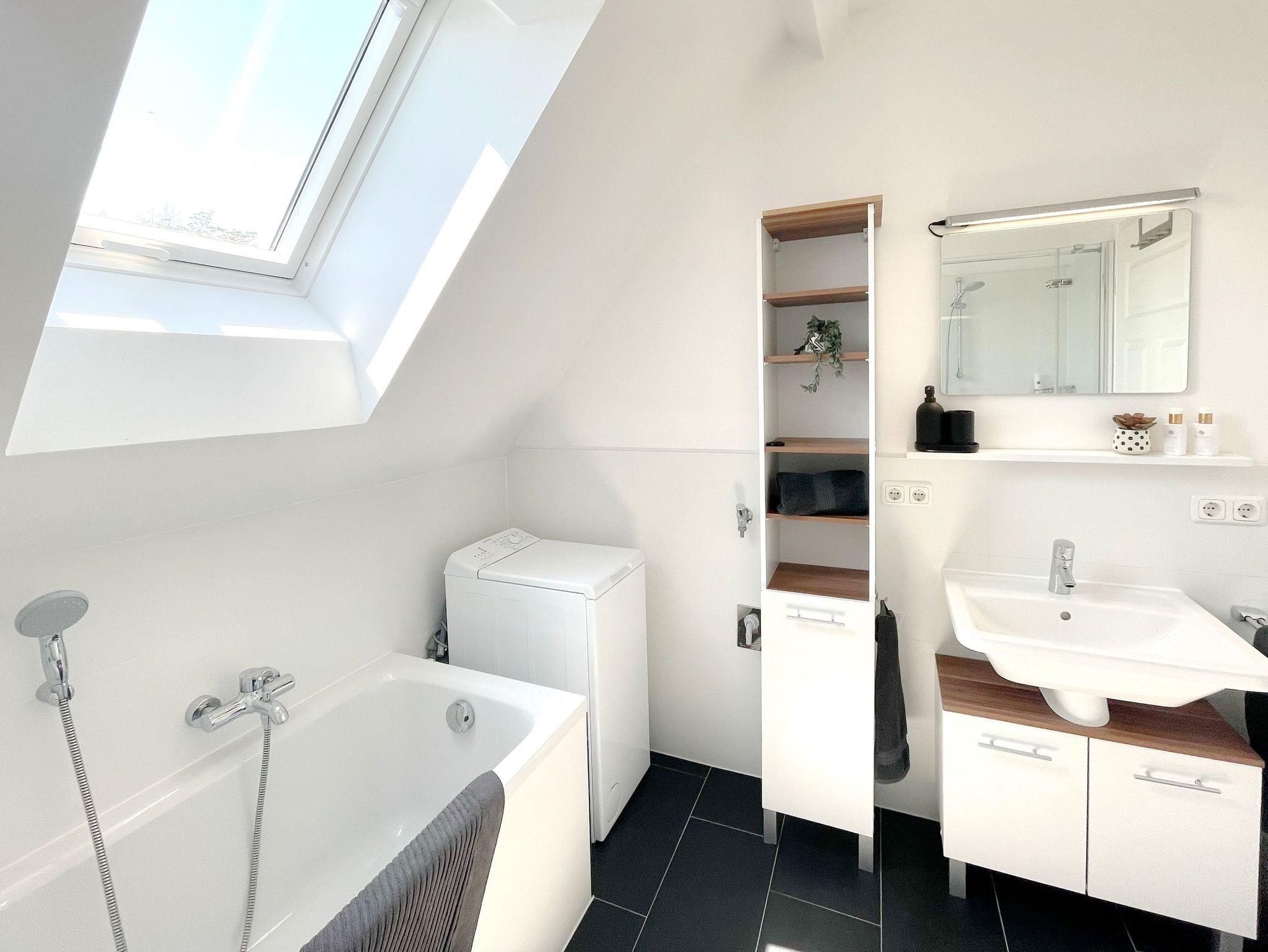 Hochwertige Materialien und abgestimmte Farben bewirken ein behagliches Ambiente. Der geräumige Wohnbereich mit Sofa, TV, Essbereich und offener Küche lädt zum Relaxen ein. Ein Doppelbett mit Kleiderschrank umfassen das Schlafzimmer. Dusche, Badewanne, Waschmaschine und WC bilden das moderne Badezimmer. Als zusätzliche Schlafgelegenheit steht das Schlafsofa im Wohnraum zur Verfügung, welches mit Taschenfederkern-Matratze versehen ist. Der große Garten um das Anwesen kann von jedem im Haus genutzt werden, gerne können Sie hier entspannen.