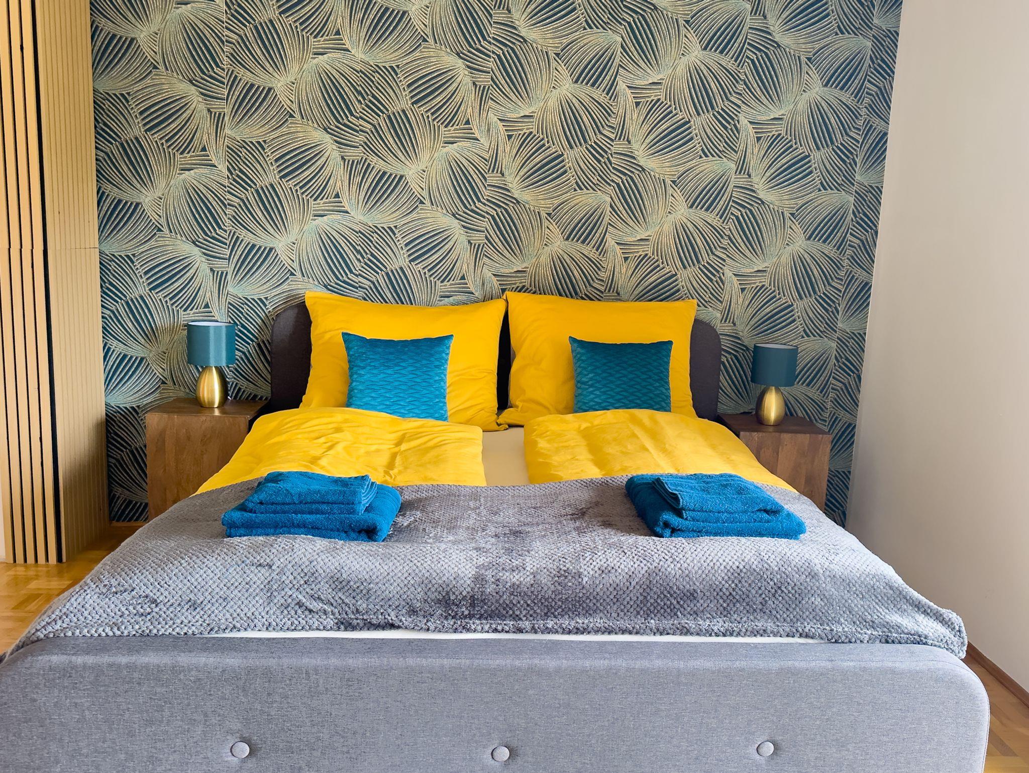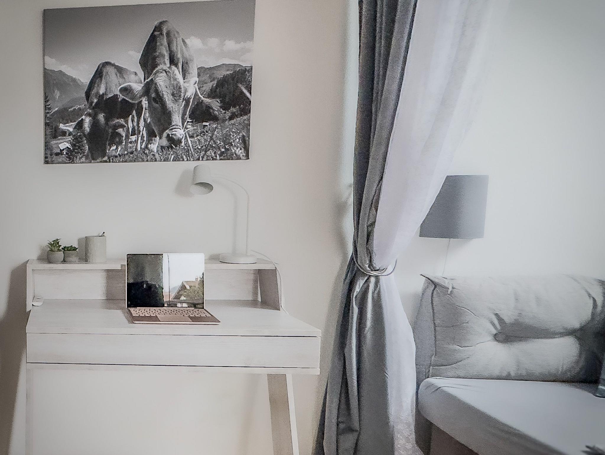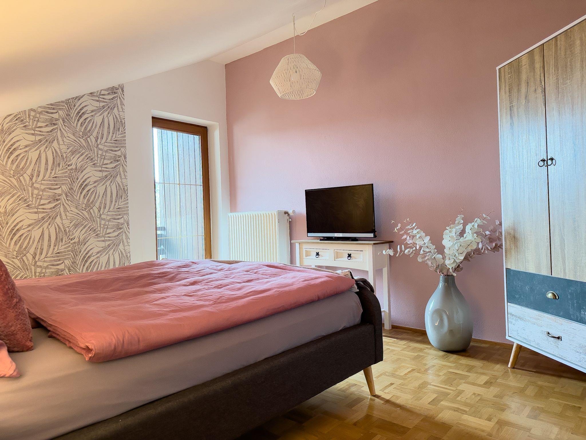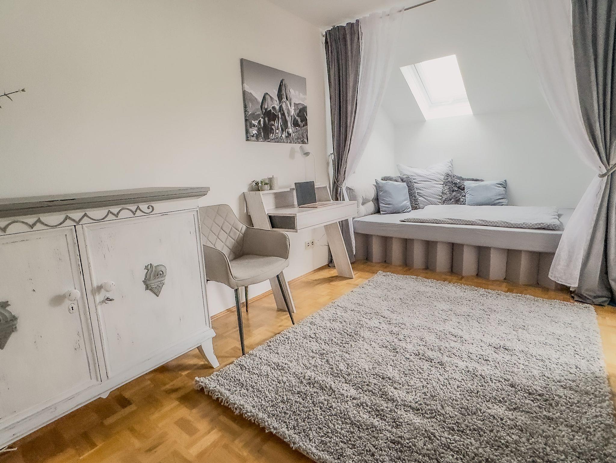 Doppelbett 180 cm x 200 cm, in diesen Raum kann bei Bedarf eine Schlafcouch aufgestellt werden mit den Maßen 120cm x190cm
