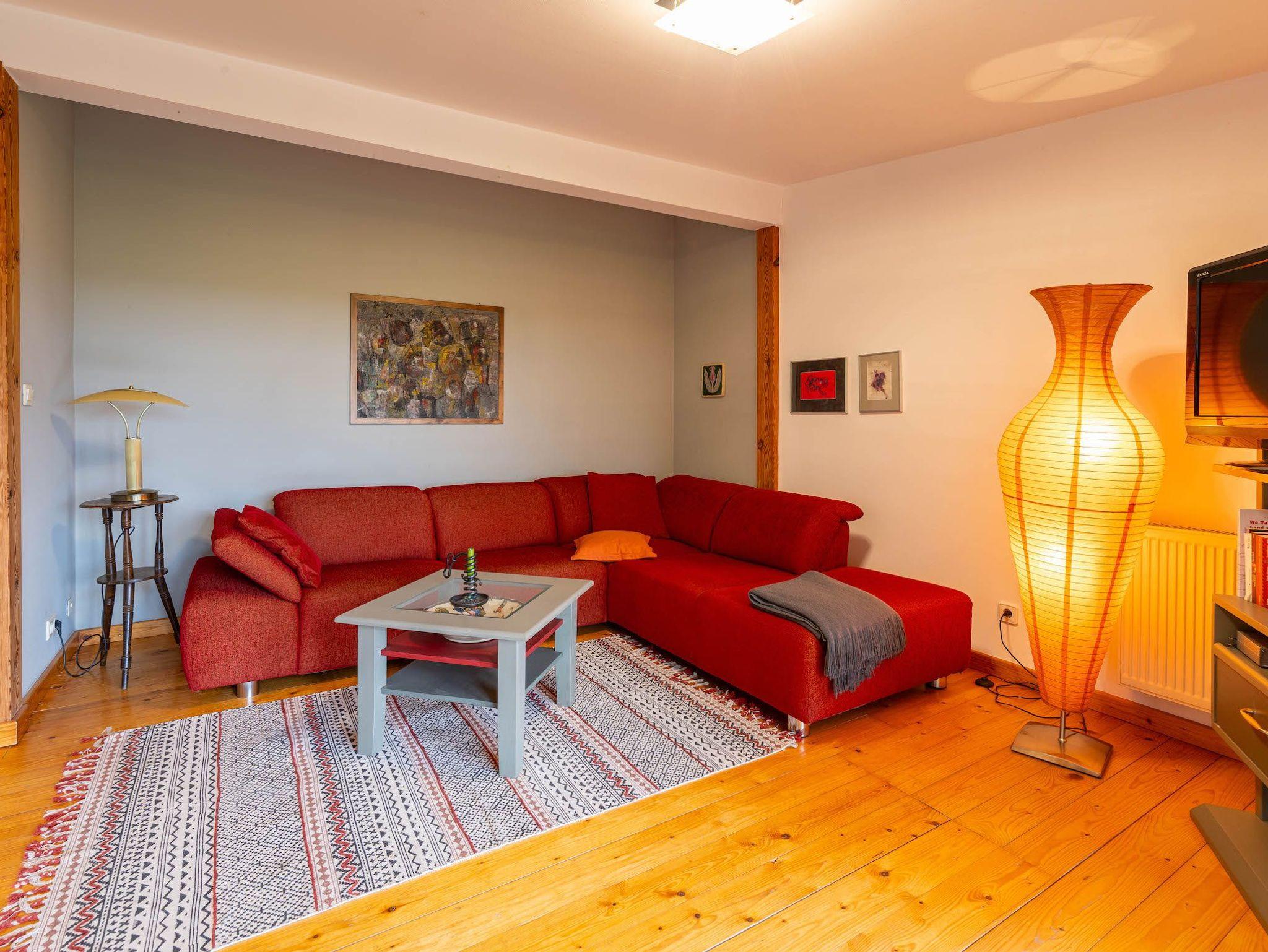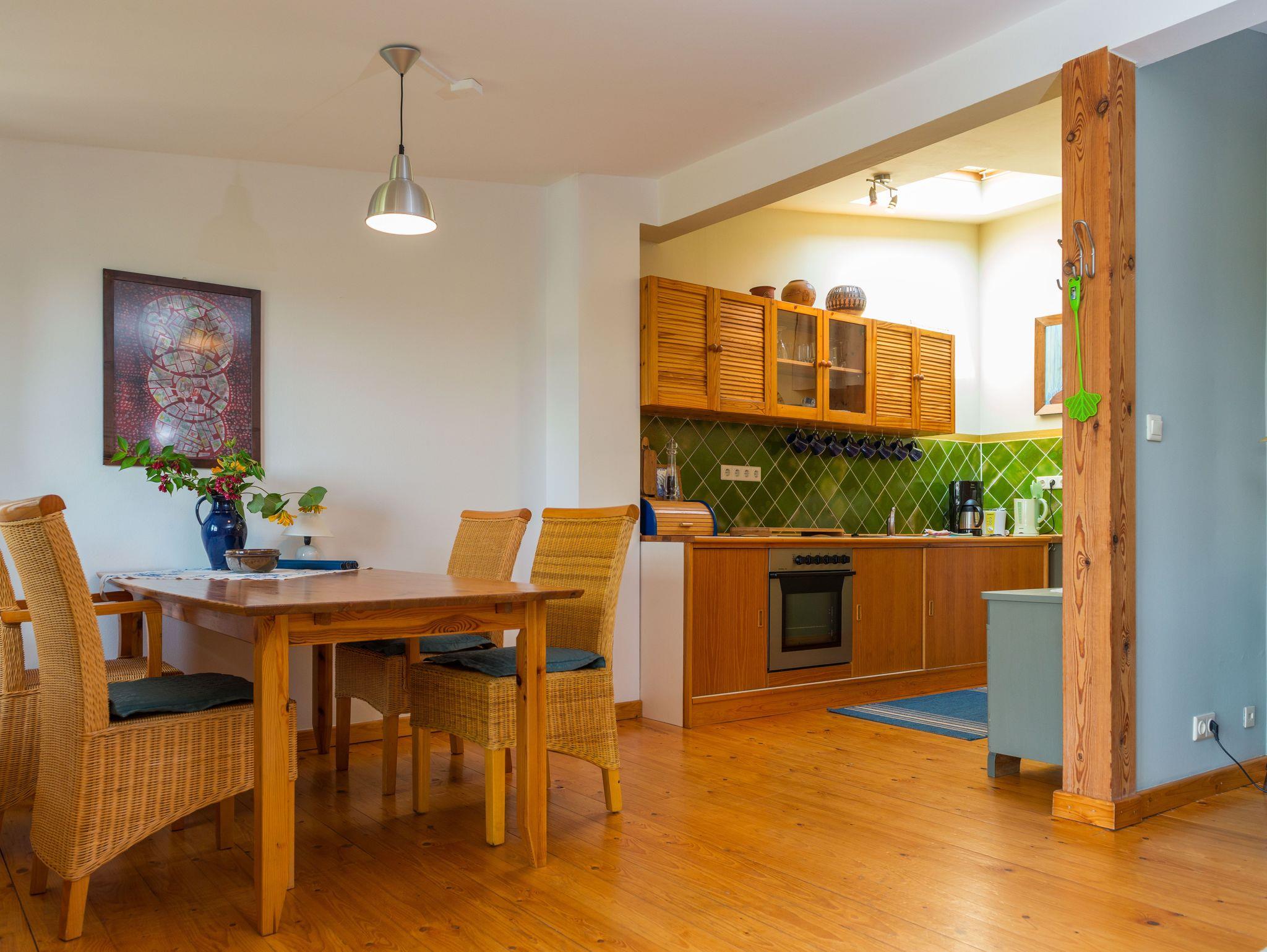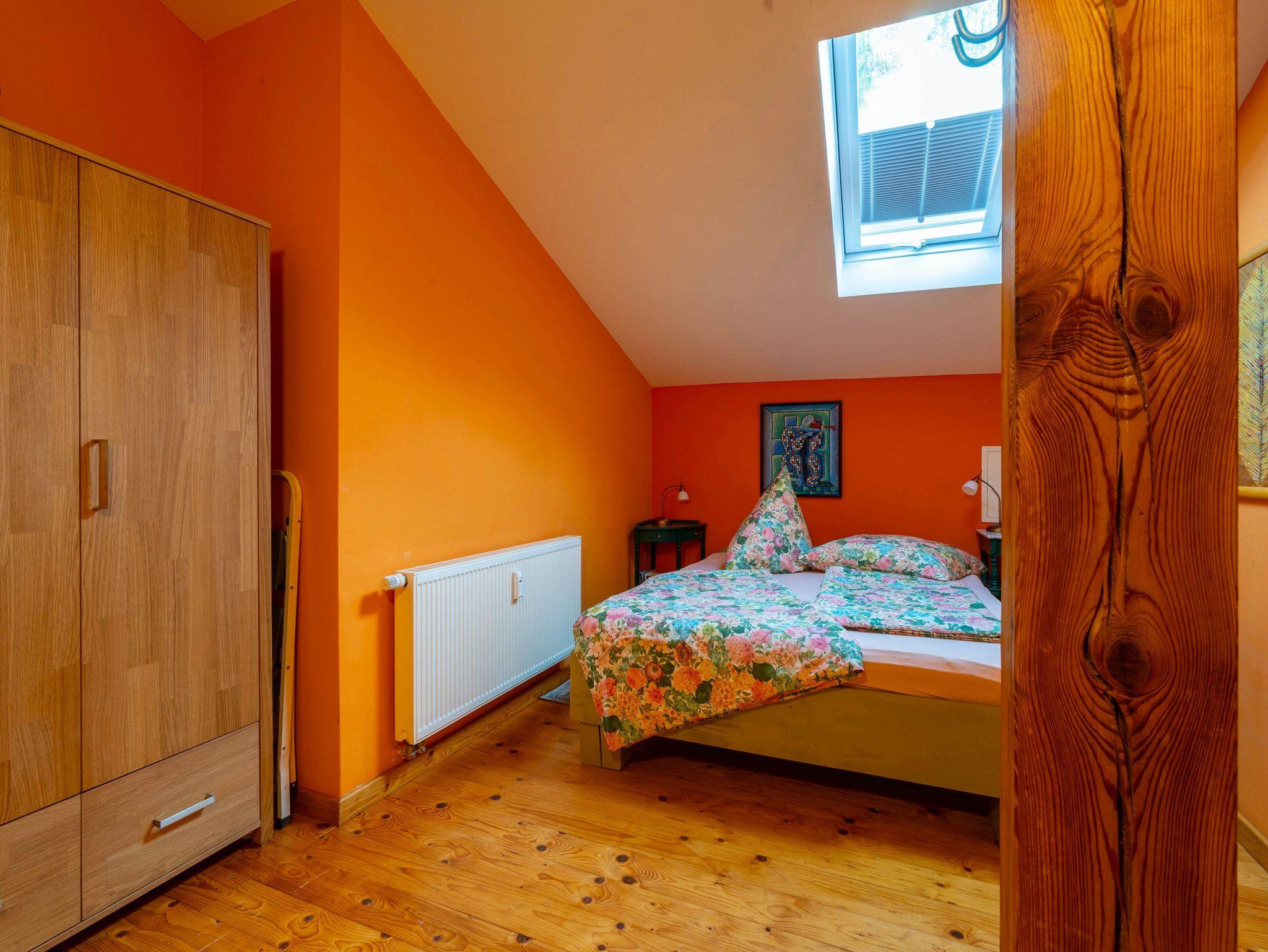Diese individuell eingerichtete, sehr ruhige Ferienwohnung liegt im Obergeschoss einer Scheune. Hier erwartet Sie ein großer Wohnraum mit Essecke, gemütlichem TV-Bereich, eine gut ausgestattete Küche, ein Bad mit Dusche und ein Schlafraum mit Doppelbett und einem Einzelbett.
