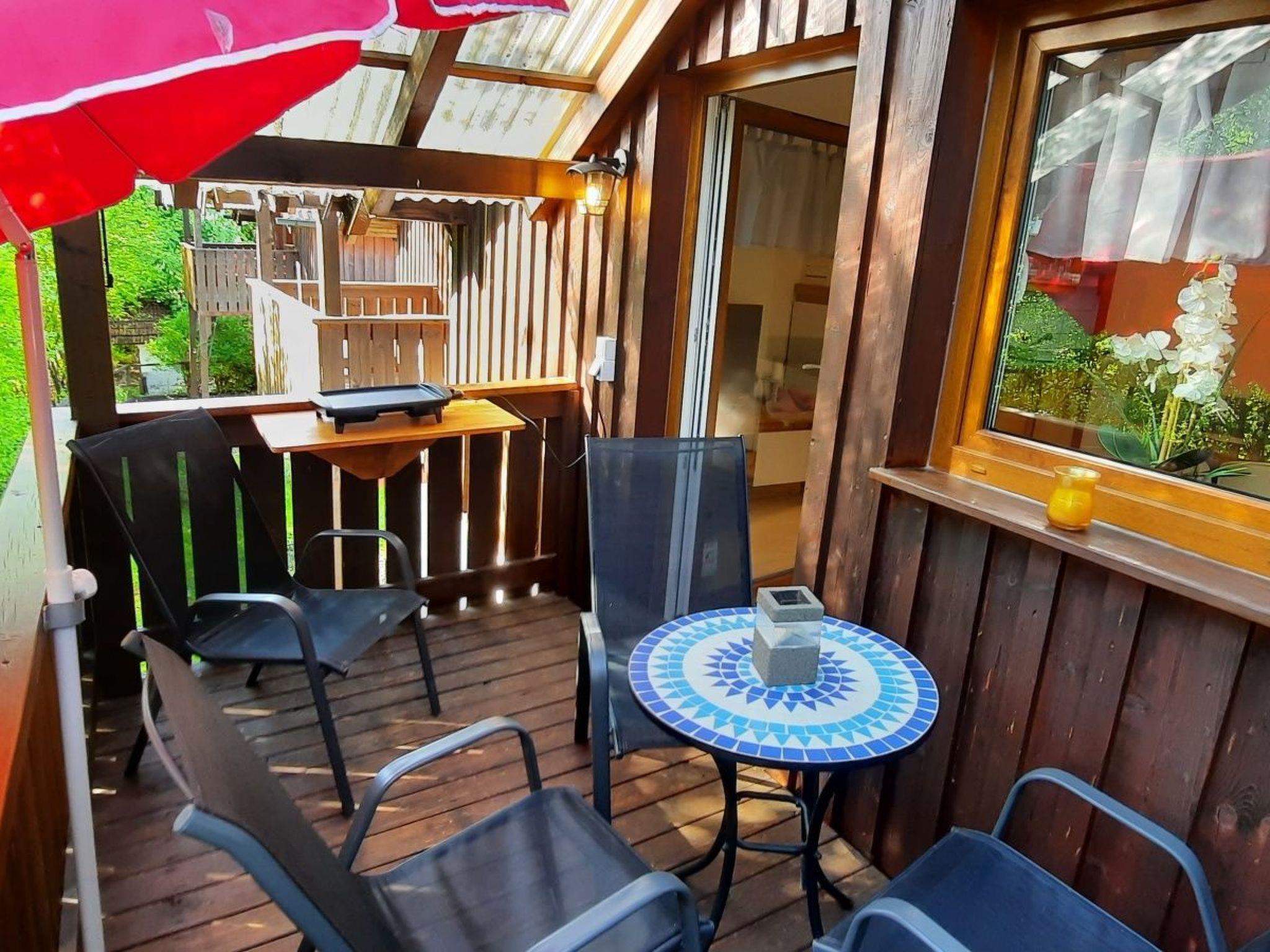 This flat was taken over by the owner at the beginning of 2019 and extensively renovated. New furnishings, partly new floors, electrics, new heating and a new hot water supply were installed. A cosy 180x200cm box-spring bed awaits you in the bedroom. From the sunny balcony you can look over a small stream to the neighbouring biotope. In the living room you will find a cosy round dining area, a comfortable 140x195cm sofa bed and HD Sat TV, BluRay player and a hi-fi radio for your entertainment. The kitchen is fully equipped with ceramic hob, fridge with freezer compartment, microwave with grill function and of course all cooking utensils. Coffee machine, toaster and kettle are of course available. The bathroom with bathtub and skylight is bright and cosy. An electric barbecue is available for cosy barbecue evenings on the balcony.