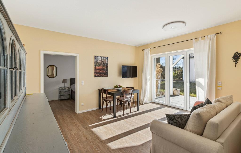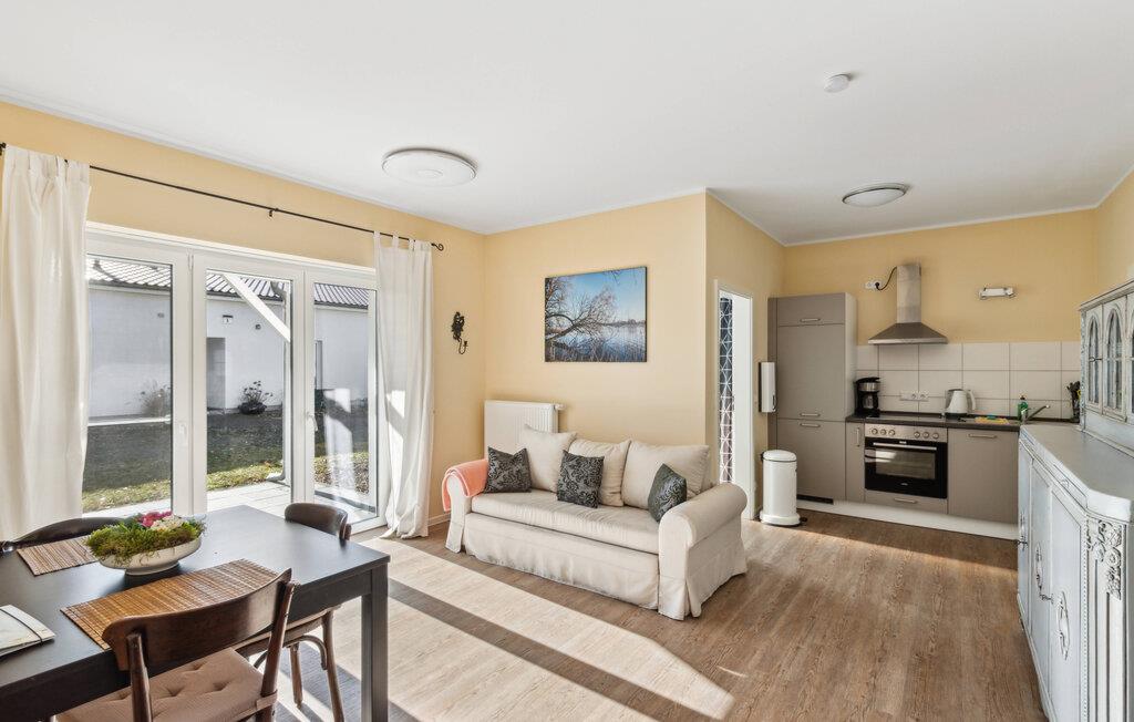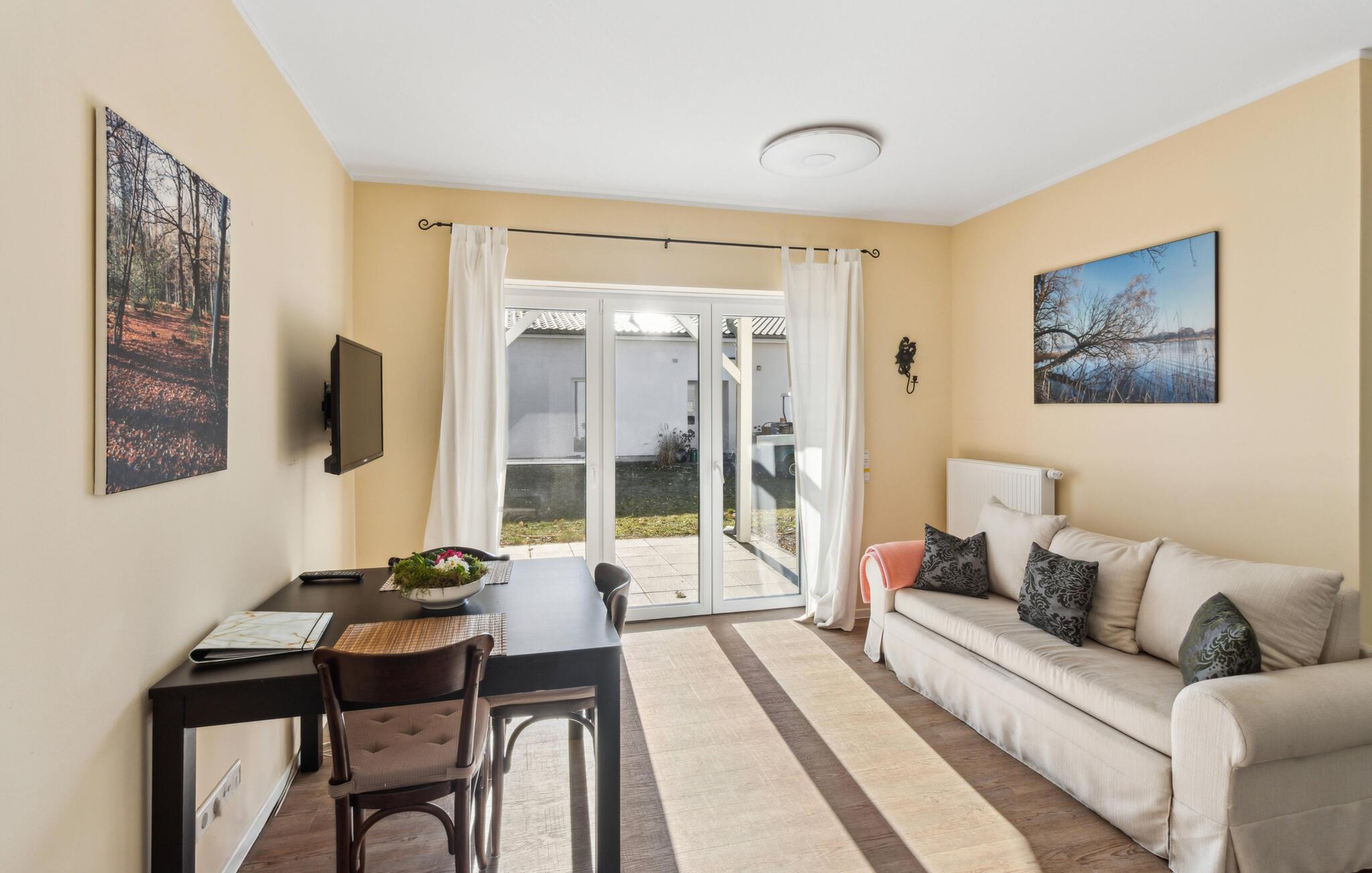 Nyd en stille pause for to i denne lyse ferielejlighed nær Großer Wentowsee. Indkvarteringen byder på ideelle forhold for afslappende dage med nærhed til naturen og nem adgang til små byer. Træd ind i den hyggelige opholdsstue med direkte udgang til terrassen. Slap af i den komfortable sofa, læs en bog eller se en film sammen. Det lille spisebord er ideelt til måltider for to eller til en hyggelig spilleaften.