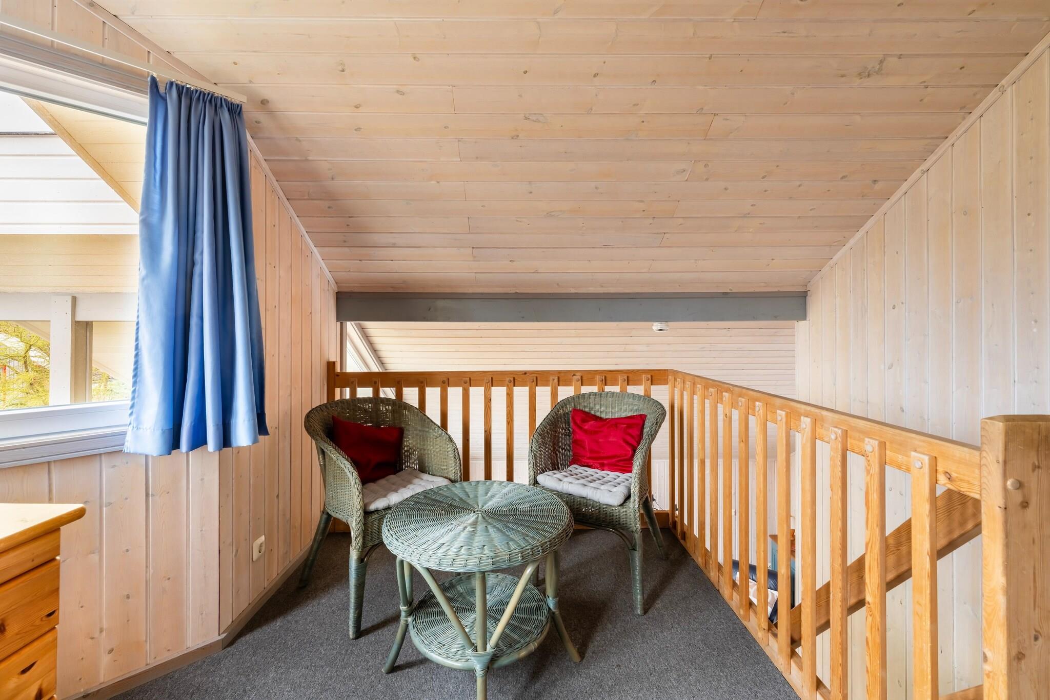 Stueetage: (Stue(Fjernsyn(parabol), pejs, sofahjørne), Køkken(spisebord, kogeplade, elkedel, brødrister, kaffemaskine, ovn, mikrobølgeovn, køleskab(+ fryser)), soveværelse(dobbeltseng), badeværelse(bruser, sauna(privat), håndvask, toilet), pulterkammer) På 1. etage: (soveværelse(enkeltseng, enkeltseng), åbent rum(halvandenmandsseng)) tørretumbler(deles med andre gæster, betalt), vaskemaskine, varme(elektrisk), terrasse(overdækket), have, havemøbler, solstole, grill(trækul), parkering, swimmingpool(deles med andre gæster, betalt), barnestol, trappegitter, baby crib(paid), Håndklæder/sengelinned (ekstra gebyr)