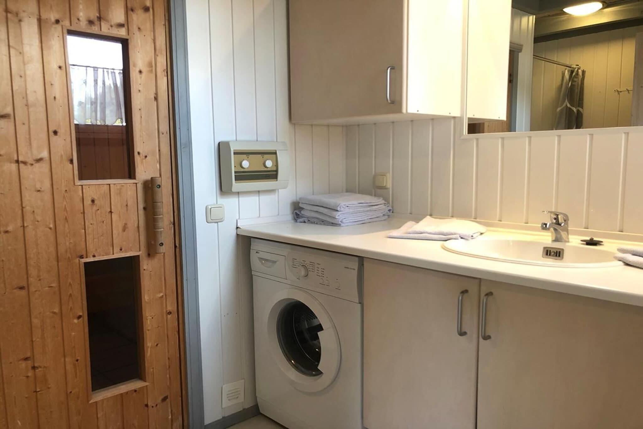 Stueetage: (Stue(Fjernsyn(parabol), pejs, sofahjørne), Køkken(spisebord, kogeplade, elkedel, brødrister, kaffemaskine, ovn, mikrobølgeovn, køleskab(+ fryser)), soveværelse(dobbeltseng), badeværelse(badekar, bruser, sauna(privat), håndvask, toilet), pulterkammer) På 1. etage: (soveværelse(enkeltseng, enkeltseng), svalegang soveværelse(halvandenmandsseng)) tørretumbler(deles med andre gæster, betalt), vaskemaskine(deles med andre gæster, betalt), varme(elektrisk), terrasse(overdækket), have, havemøbler, solstole, parkering, swimmingpool(deles med andre gæster, betalt), barnestol, baby crib(paid), Håndklæder/sengelinned (ekstra gebyr)
