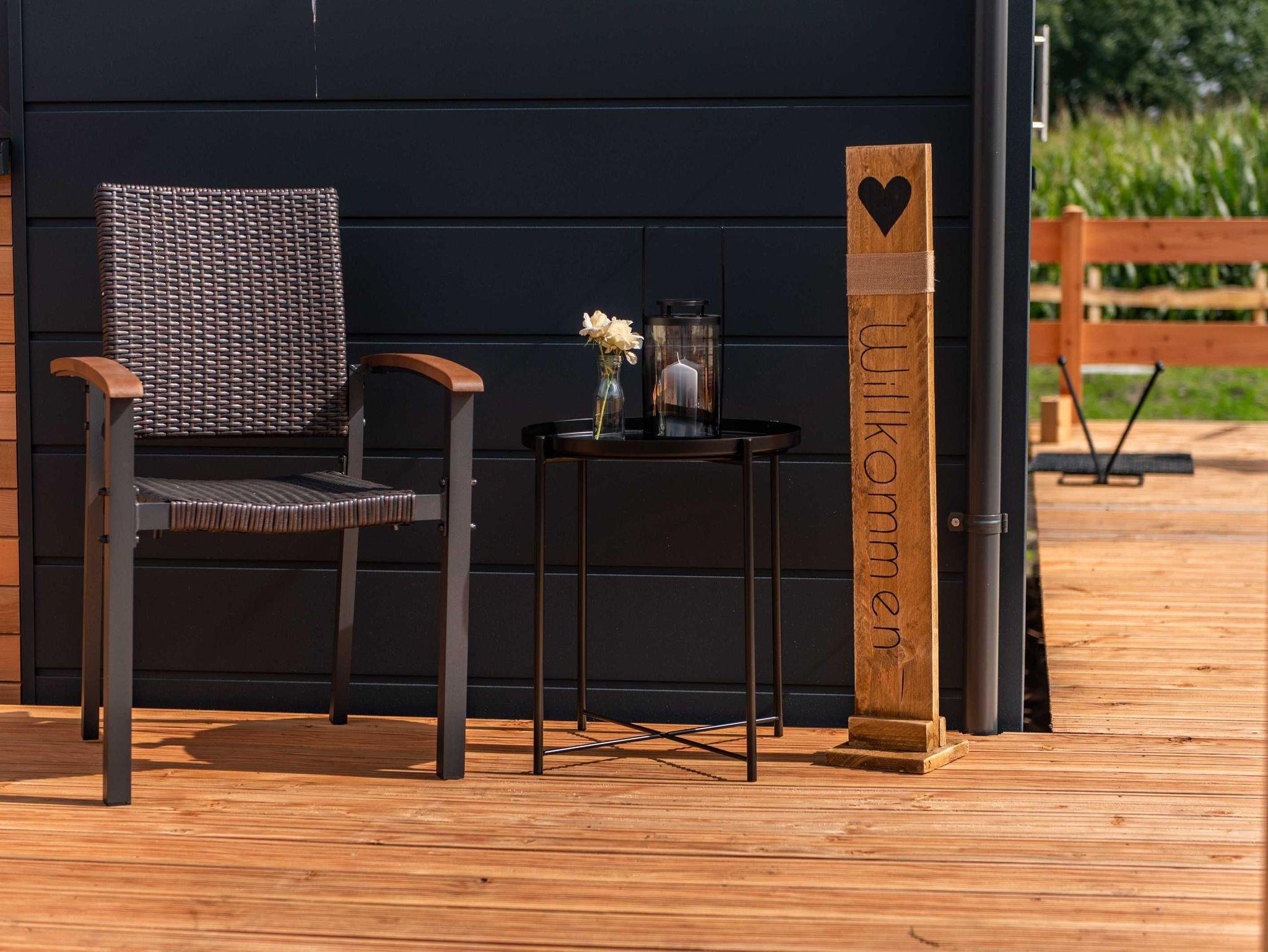 Wer richtig entspannen möchte, gönnt sich eine persönliche Auszeit in unserem Panorama-Saunafass. Dort stehen zwei Wellenliegen mit direktem Blick auf unsere Wiesen und Felder bereit. Außerdem gibt es innen eine Dusche und einen großzügigen Ruhebereicht sowie außen eine Terrasse mit Himmelsliege.