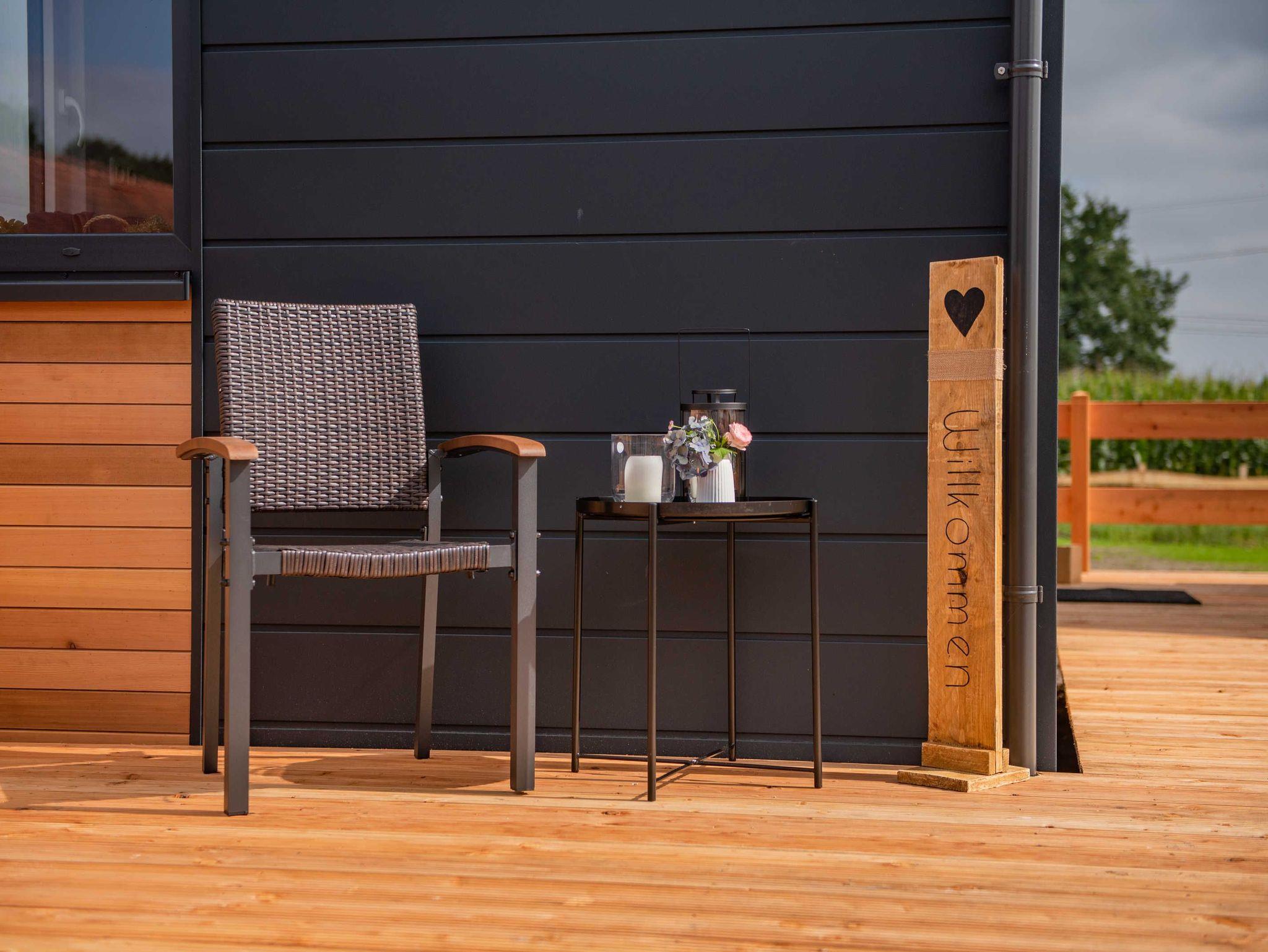 Wer richtig entspannen möchte, gönnt sich eine persönliche Auszeit in unserem Panorama-Saunafass. Dort stehen zwei Wellenliegen mit direktem Blick auf unsere Wiesen und Felder bereit. Außerdem gibt es innen eine Dusche und einen großzügigen Ruhebereicht sowie außen eine Terrasse mit Himmelsliege.