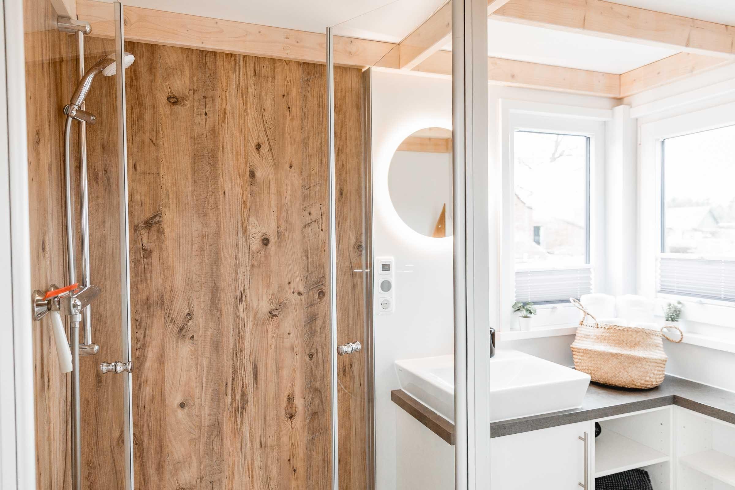 Großes Landurlaubserlebnis im kleinen Haus: Das Tiny-House KUHni verbindet modernen Komfort für 4 Personen mit Urlaub auf dem Bauernhof auf dem Huxfeld-Hof.