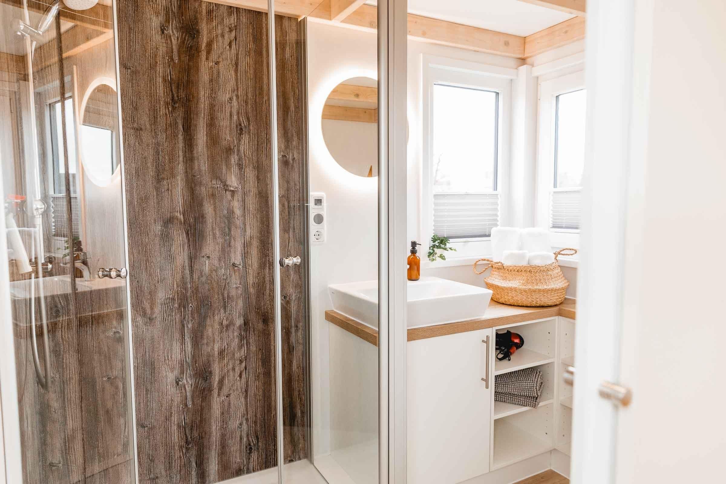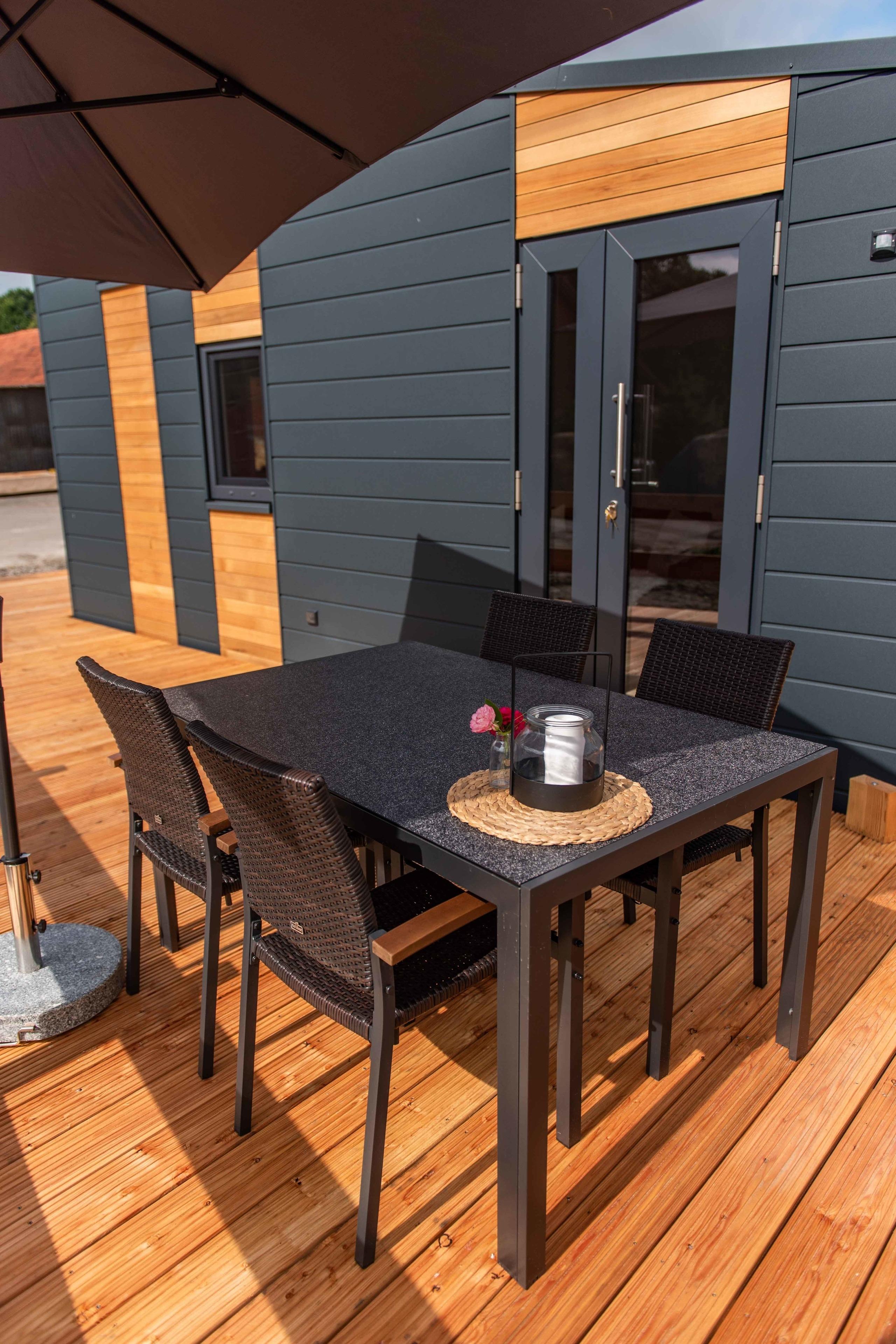 Großes Landurlaubserlebnis im kleinen Haus: Das Tiny-House MOORitz verbindet modernen Komfort für 4 Personen mit Urlaub auf dem Bauernhof auf dem Huxfeld-Hof.