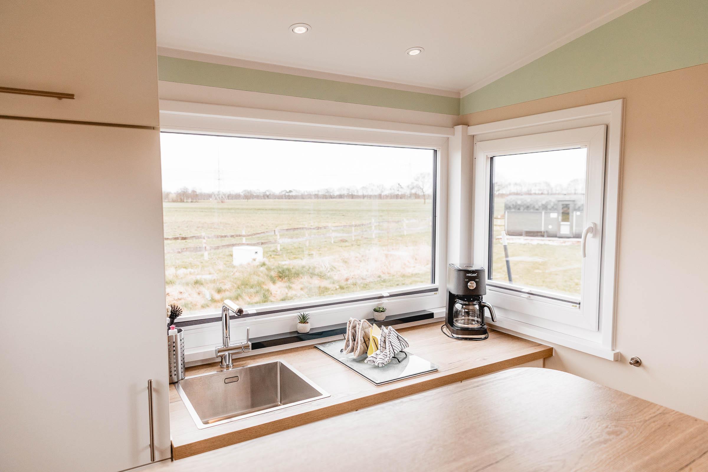 Ein Highlight sind die vielen Fenster, die viel Licht herein lassen und den Blick auf die Wiesen und Felder lenken.