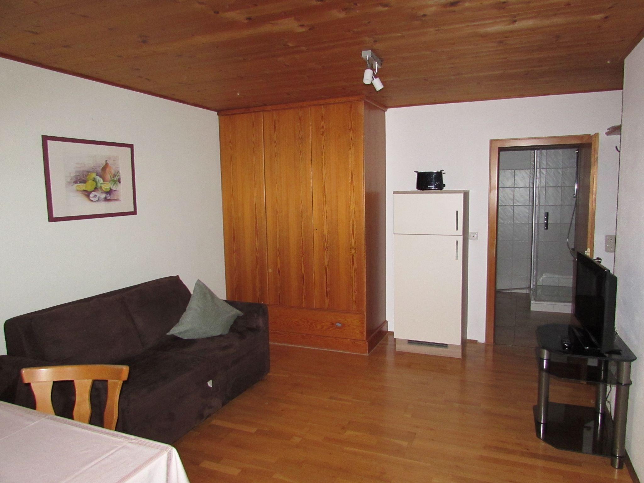 Die Ferienwohnung befindet sich in der 1. Etage und verfügt über ein Schlafzimmer mit Doppelbett, ein Wohn-Schlafraum mit einer Schlafcouch, eine großzügige Essecke und Kochnische mit Spülmaschine, DU/WC und Balkon (der nach Süden zeigt).