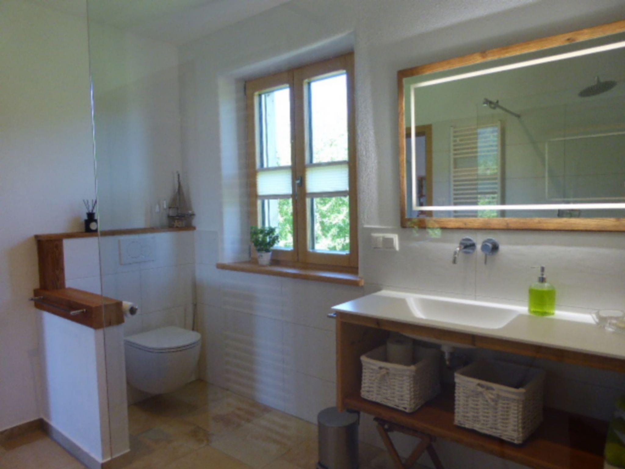 Ein abschließbarer Raum für Ihre Fahräder und ein Parkplatz am Haus runden das Angebot ab. Unsere Ferienwohnung befindet sich in ruhiger Ortrandlage. Die Entfernung zum Reifinger - Badesee beträgt ca. 800 m. Der nächstgelegene Bäcker und Supermarkt ist in wenigen Gehminuten erreichbar.