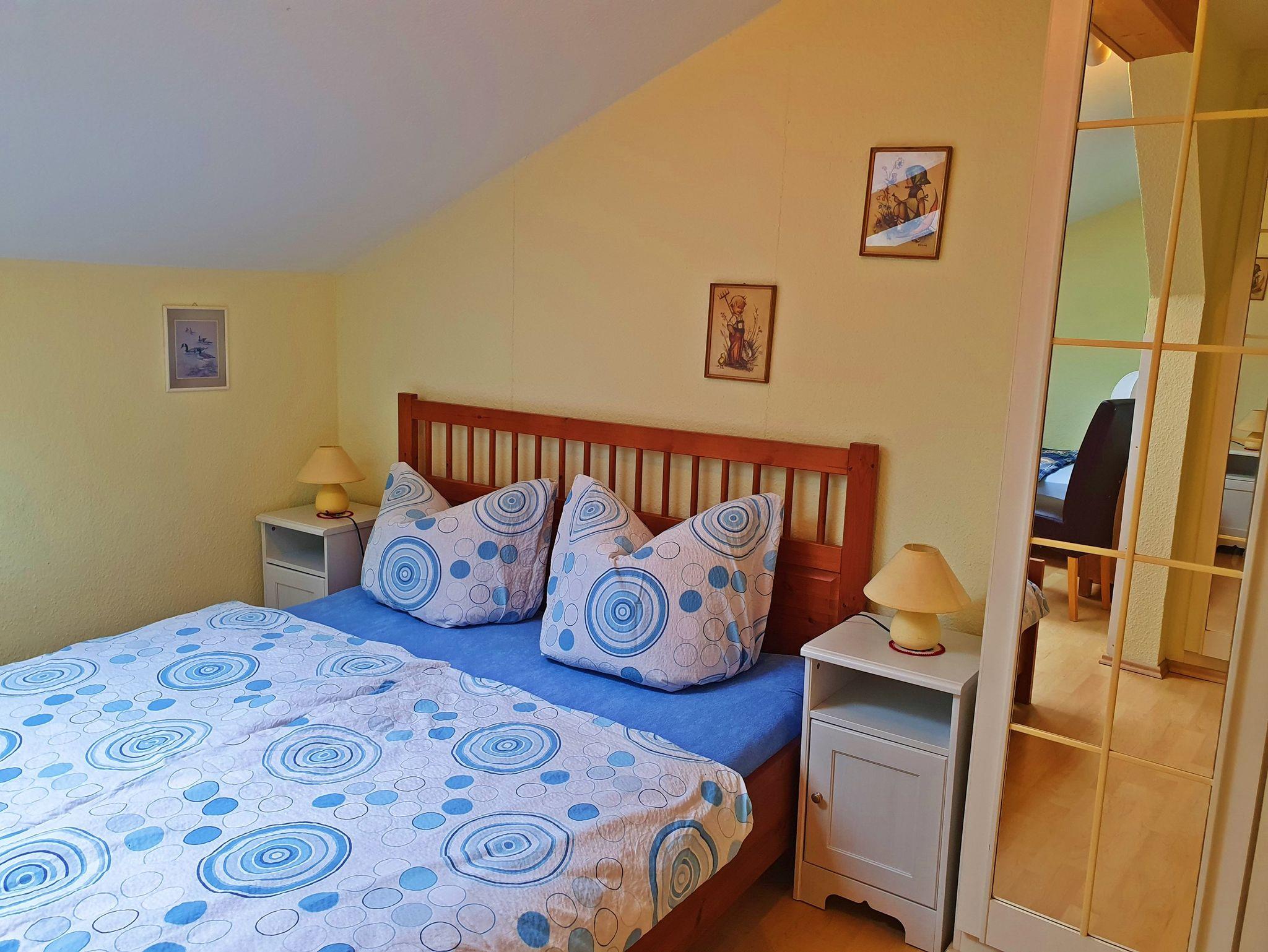 Ferienwohnung mit großem Wohnzimmer, TV, 2 Schlafzimmer mit Doppelbett und einem Einzelbett, Küche mit Spülmschine, Mikrowelle, Bad m.Wanne u.Dusche/WC Balkon, Liegewiese.