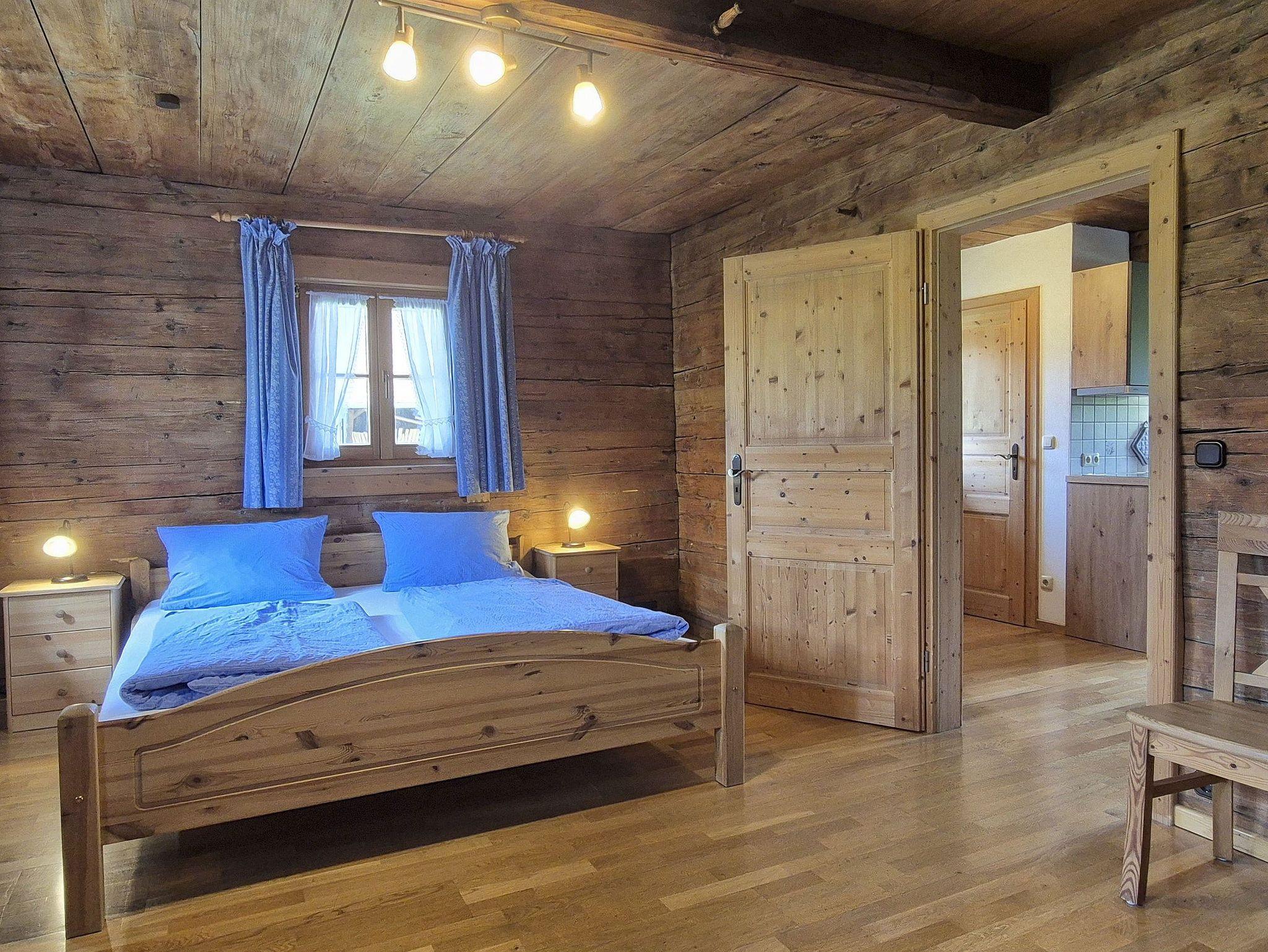 Das unter Denkmalschutz gestellte Zuhaus liegt sehr ruhig am Ortsrand mit freiem Blick auf Wiesen und Berge. Die Ferienwohnung befindet sich im 1. Stock und ist mit 2 separaten Schlafzimmern, 2 Balkonen, einer gemütlichen Wohnküche mit Essplatz und Du/WC ausgestattet. 1 Doppelzimmer kann zur FW zugemietet werden. Grillmöglichkeit mit Gartenhäuschen vorhanden.