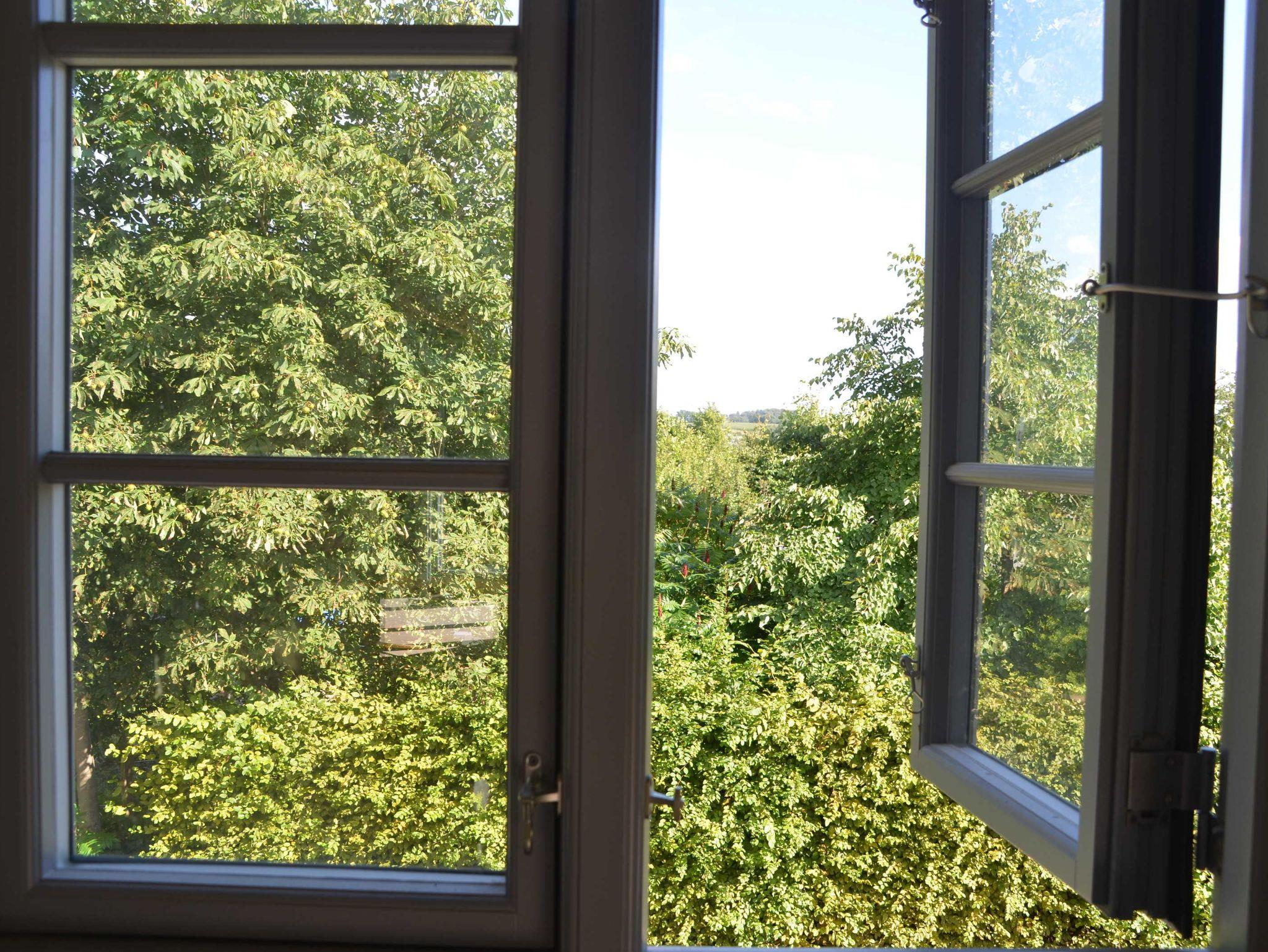 Eichendielen, edlem Lehmputz, großzügigem Wohnraum mit verglastem Erker, Essbereich, separates Schlafzimmer, TV, Radio/CD-Player, WLAN.