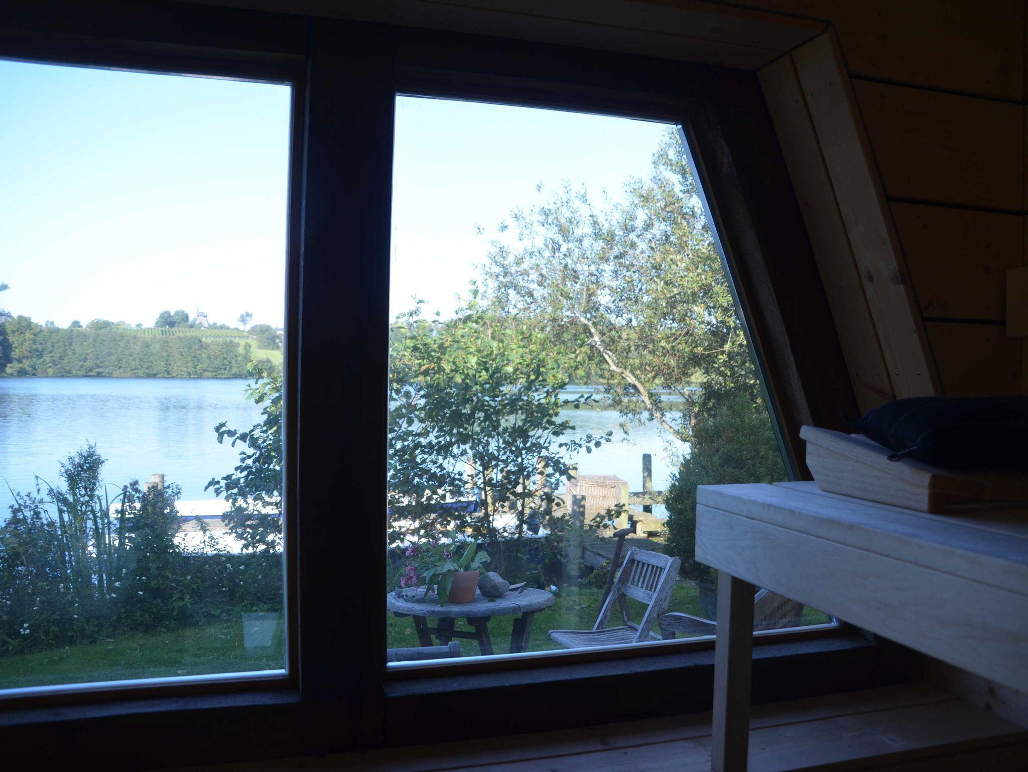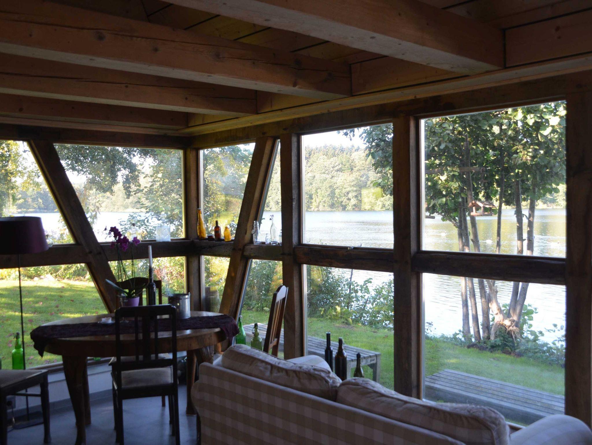 Die einmalige Fachwerkkonstruktion mit Dreifachverglasung der gesamten Längsseite gibt einen malerischen Blick auf See, Wald und holsteinische Hügellandschaft frei. Vom gegenüber liegenden Ufer lockt die Windmühle „Wagria“ auf dem nördlichsten Weinberg Deutschlands zu einer Erkundungstour. Das Wahrzeichen des Ortes Grebin leuchtet des Nachts im goldenen Schein. Am Morgen grüßen die Wasservögel und laden zum Frühstück unter freiem Himmel ein.