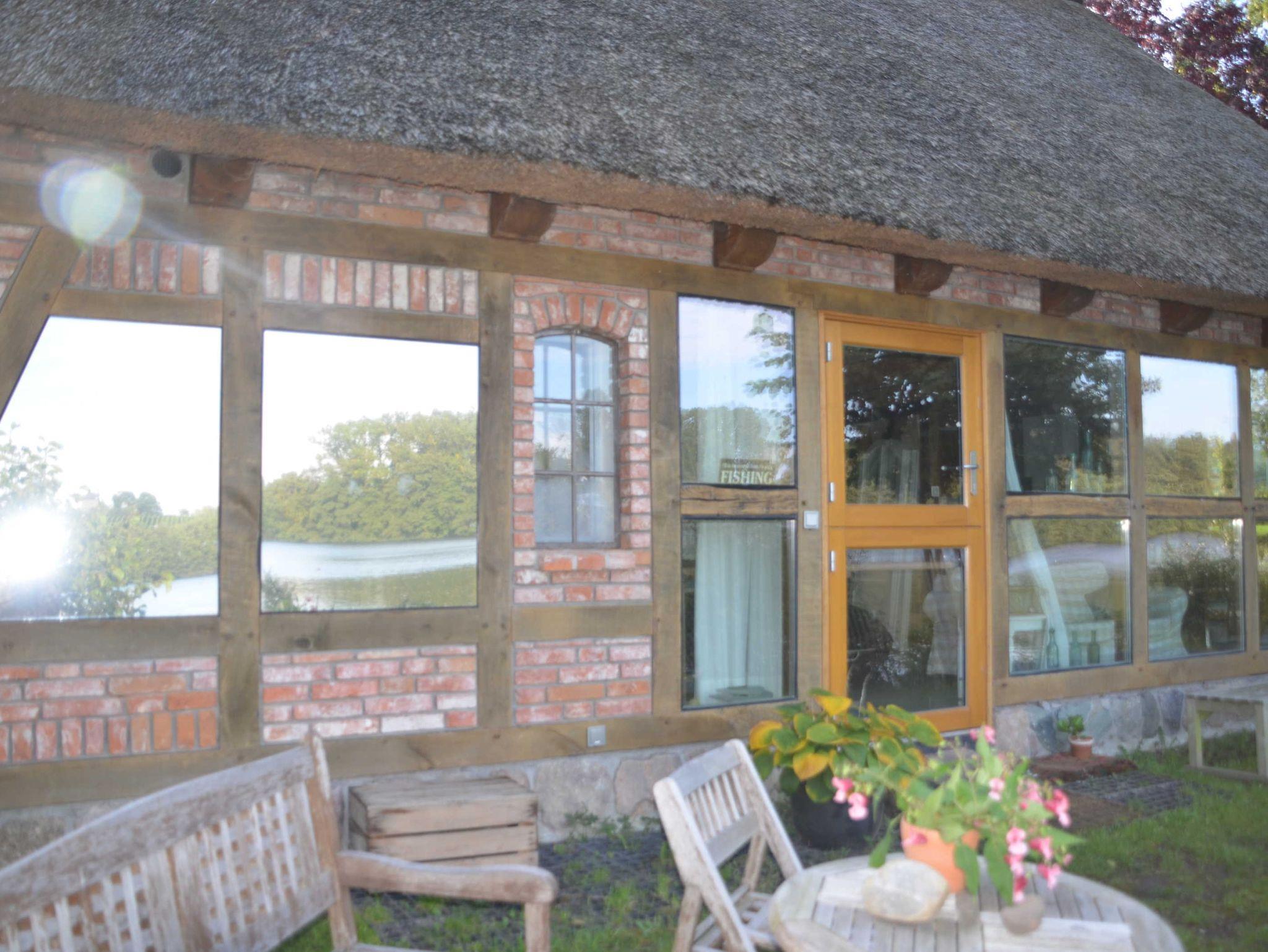 Die reetgedeckte Fischerkate des Gestütes Schierensee liegt traumhaft unmittelbar am privaten Gewässer.