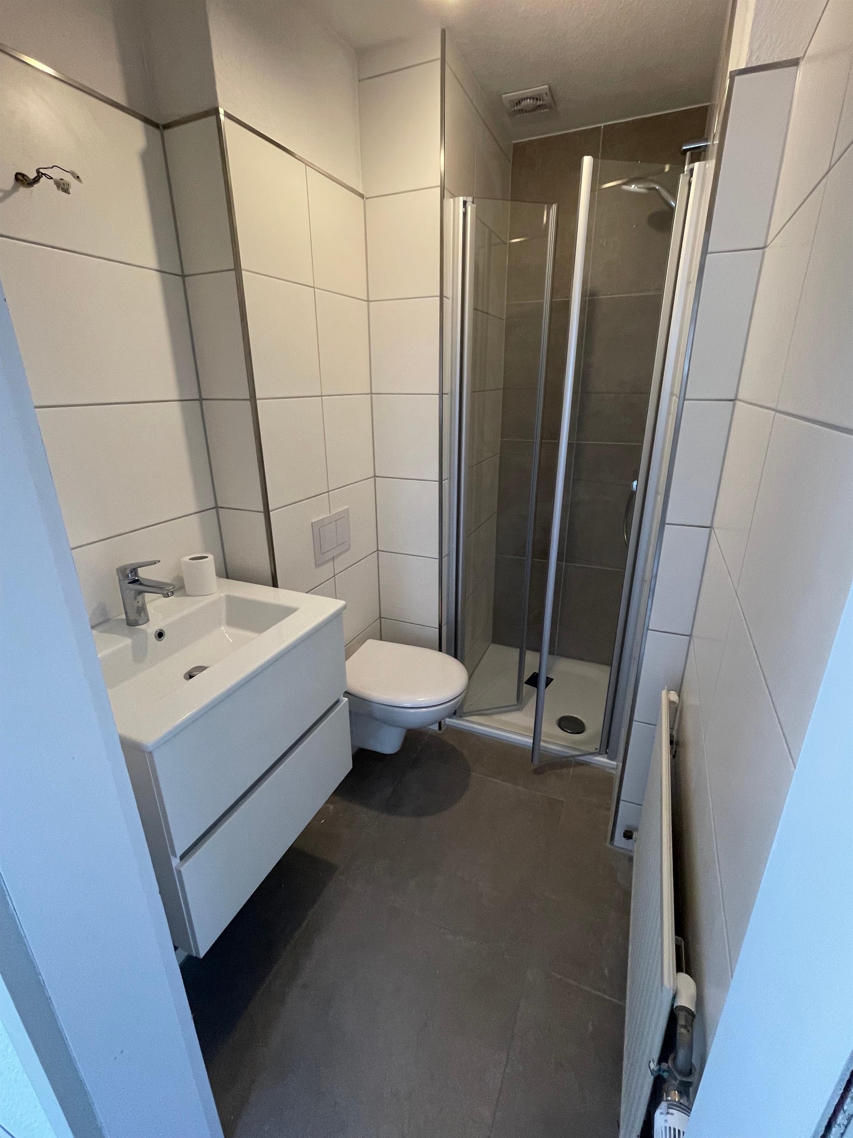 Das neue Duschbad hat einen ganz flachem Einstieg in die Dusche.
