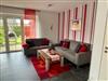 Eine kompl. ausgestattete moderne Küche, ein heller freundlicher Wohn-Essraum mit gemütlichen Sofas u. Sessel sowie einem Essplatz und Ausgang zur Terrasse u. Garten.