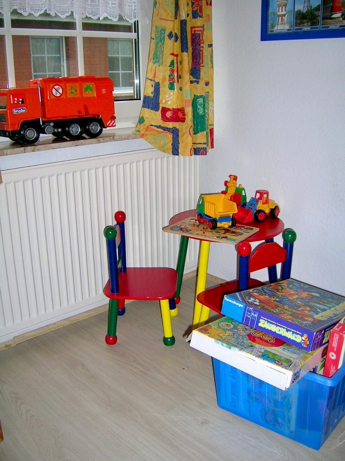 Auch in diesem Haus gibt es ein Kinderbett, Hochstuhl und eine schöne Spielecke mit Büchern, Kindermöbeln und viel Spielzeug.