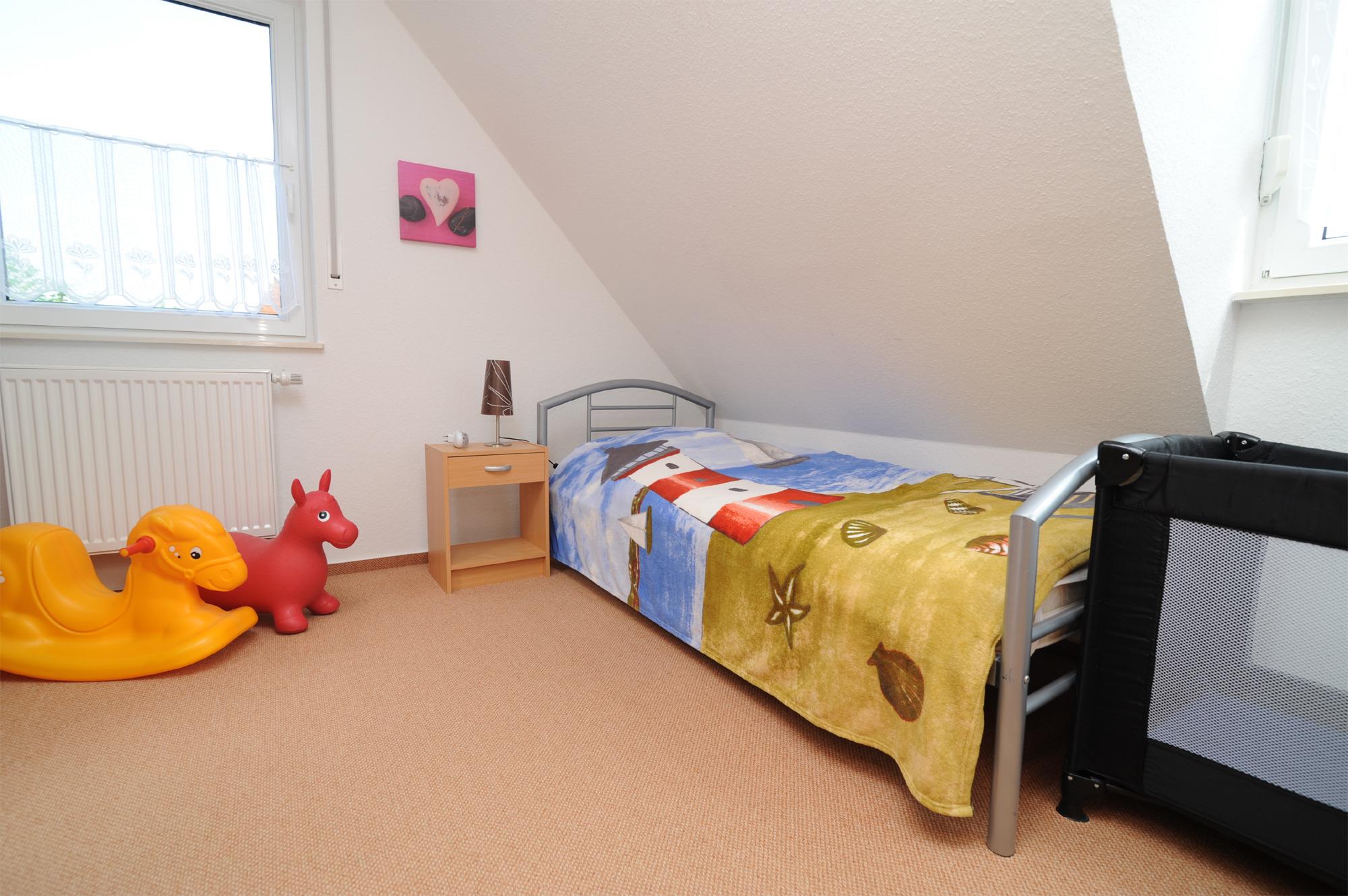 Im OG befinden sich 2 Schlafzimmer und das Duschbad-WC. Im DG befindet sich das 3. Schlafzimmer.