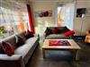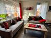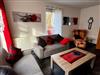 Geradeaus liegt das modern eingerichtete Wohnzimmer mit großen Panoramafenstern, die eine schöne Aussicht in den Garten ermöglichen. Während an den wärmeren Tagen die Terrasse und der Garten zum Entspannen oder zum Grillen einladen, ist es an kühleren Tagen im Wohnraum mit schönen Sofas zu richtig gemütlich bei einer Tasse ostfriesischem Tee.